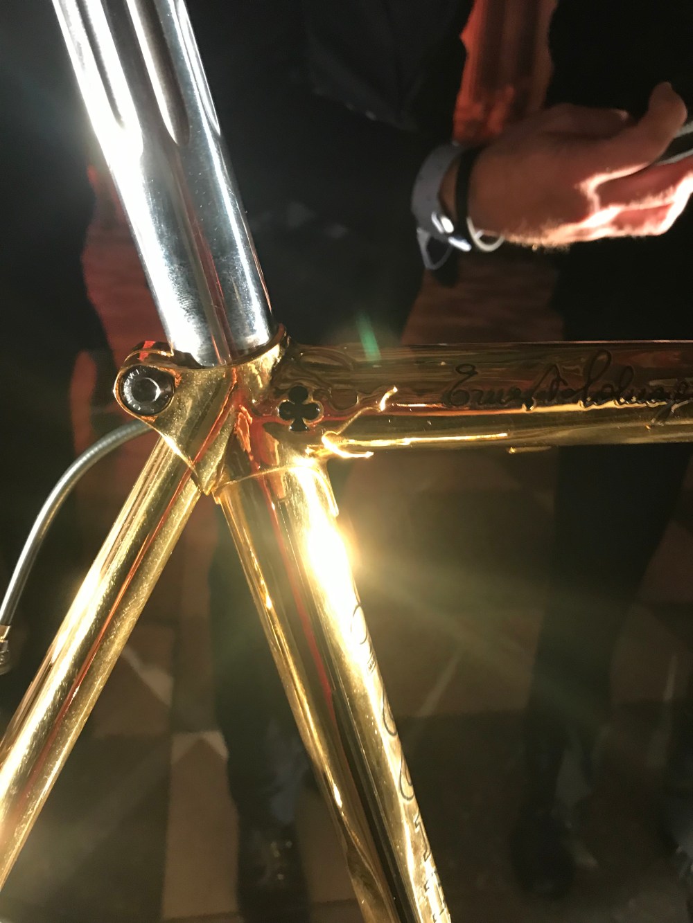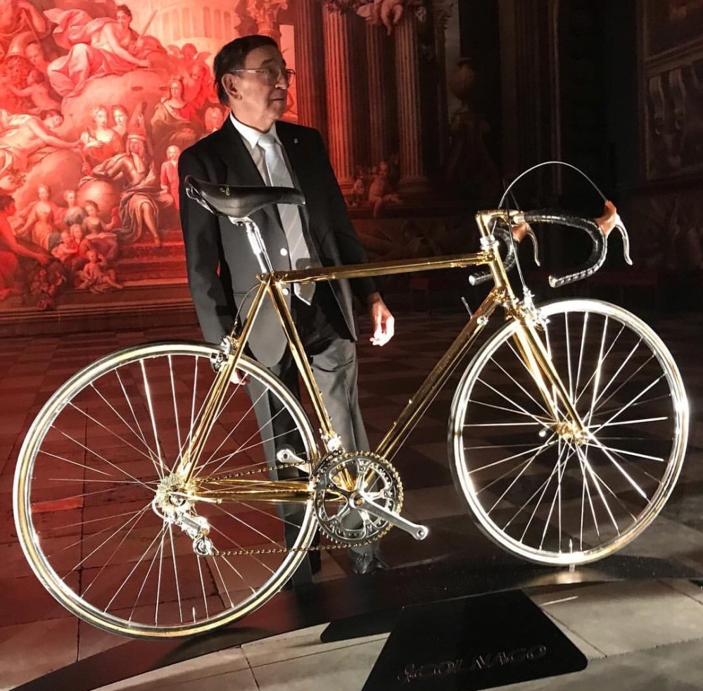 A one of a kind Colnago ‘ 87 ‘ , a 24 carat gold plated 2nd generation Colnago Arabesque , with Campagnolo 50 th anniversary gruppo …