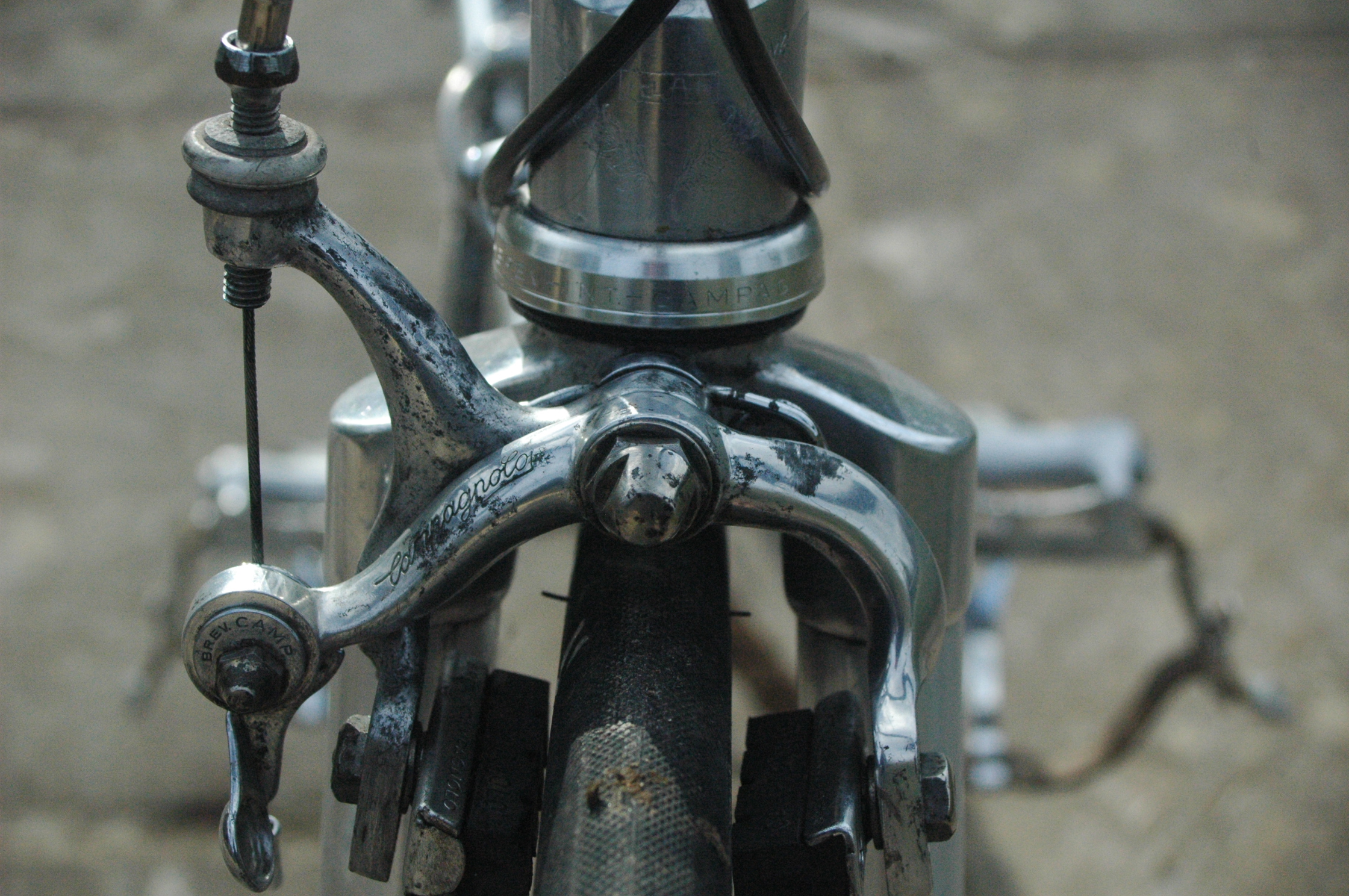 I had a Campagnolo Victory 7 speed gruppo waiting, (all bar the brake levers),a Campagnolo C Record headset, and as the bike is destined to be a commuter/rain bike, decided I would use combined brakes and shifter units on drop bars…