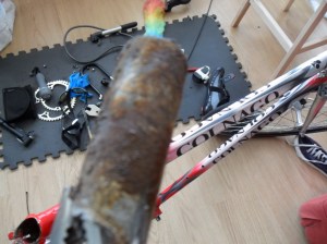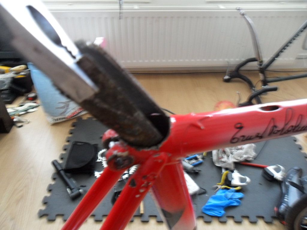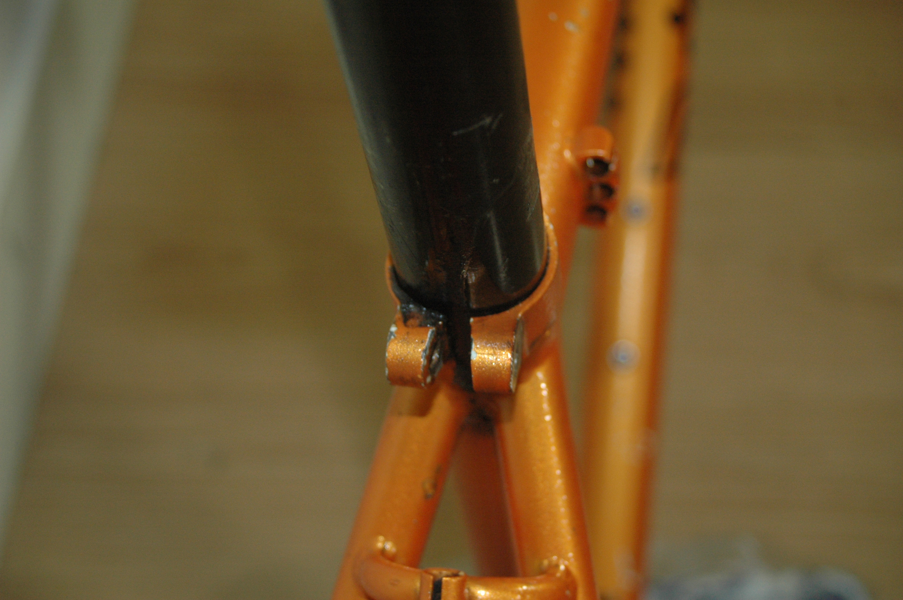 but sadly a crack appeared on the non drive side area of the seatpost clamp collar, so I will see if I can repair with a tig weld, luckily, the frame is constructed with tig welding, so won’t look too bad.