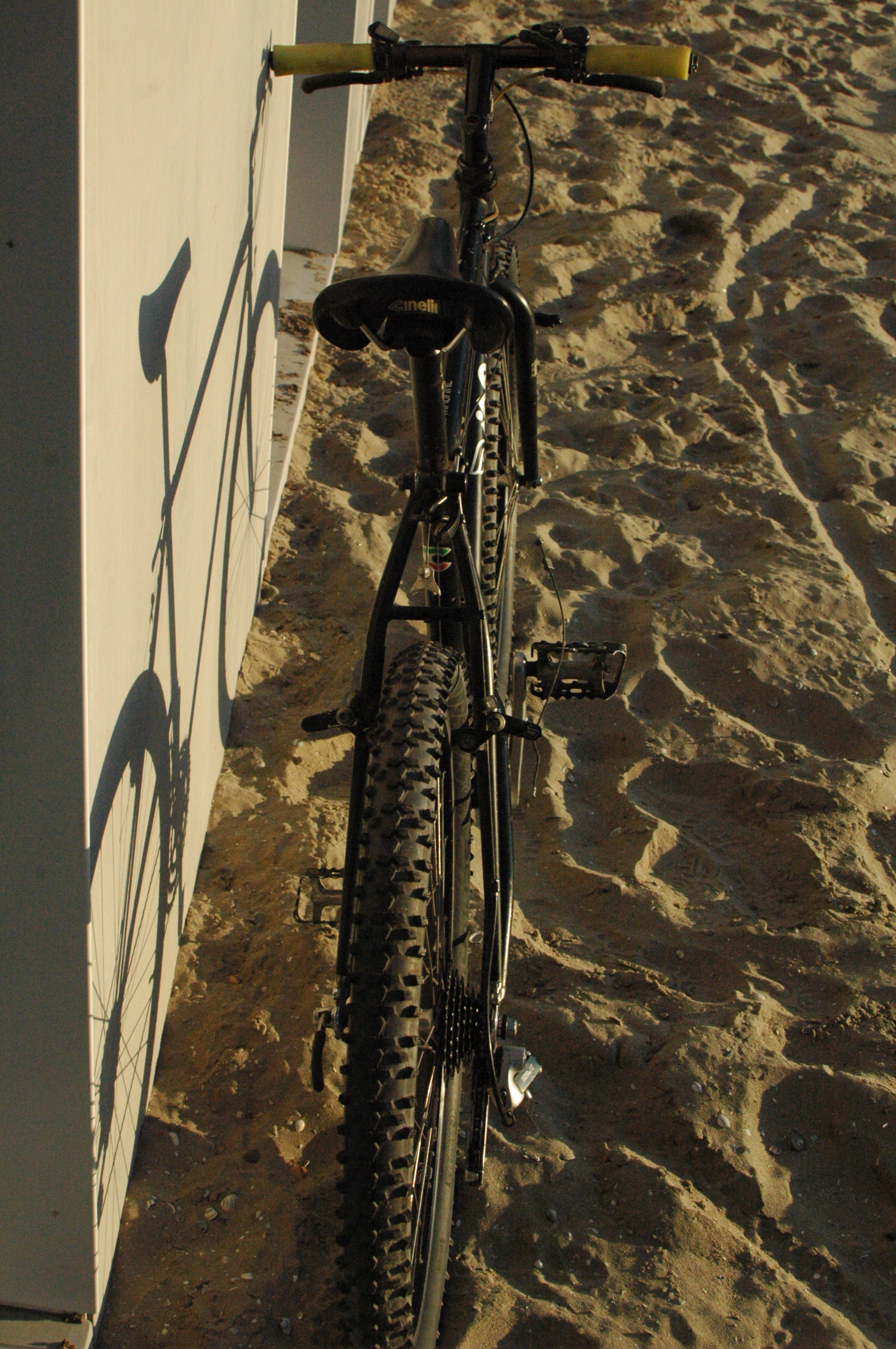 so before I stripped it, I tried out some fat tyres and a Cinelli Volare saddle..