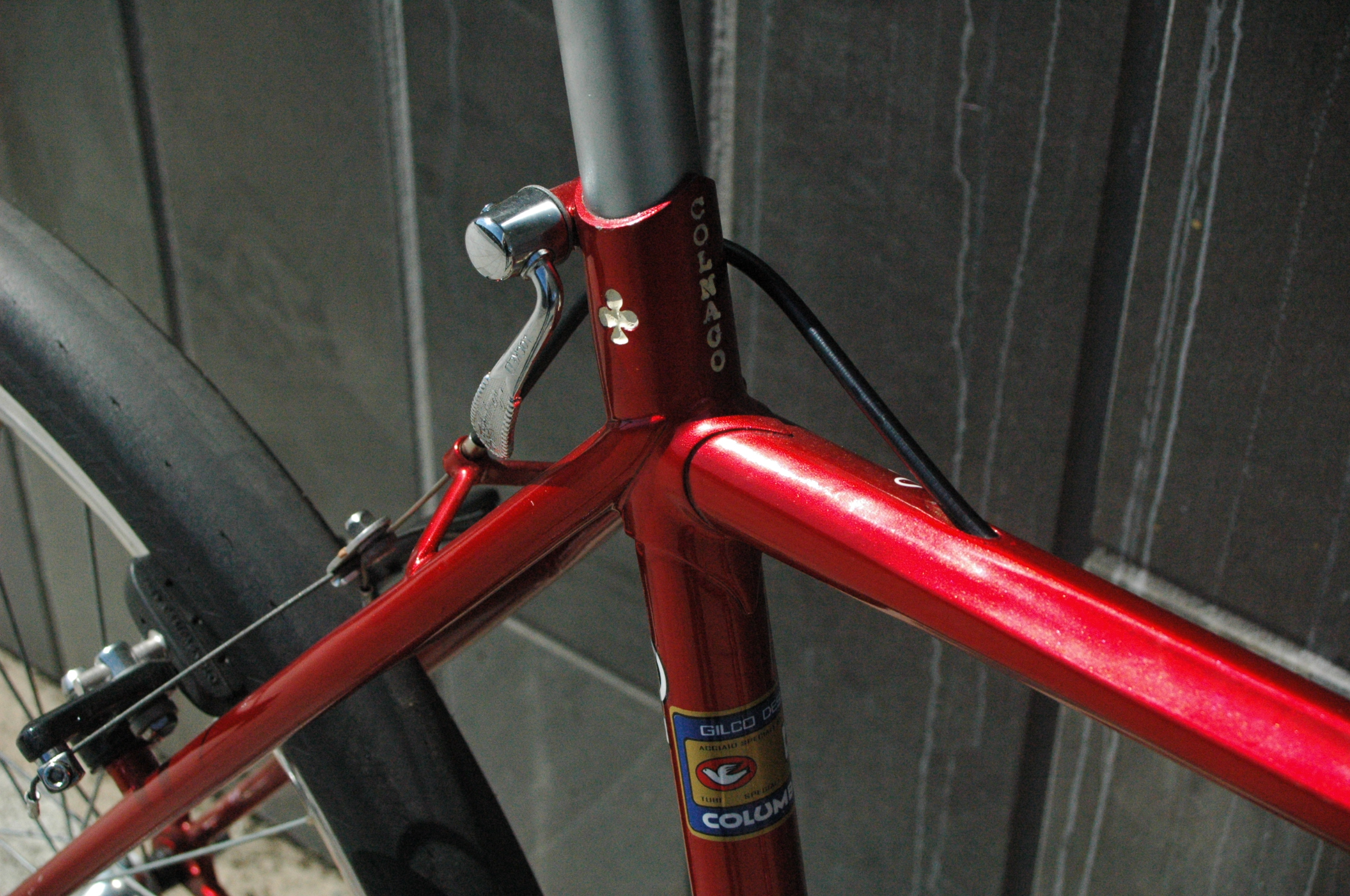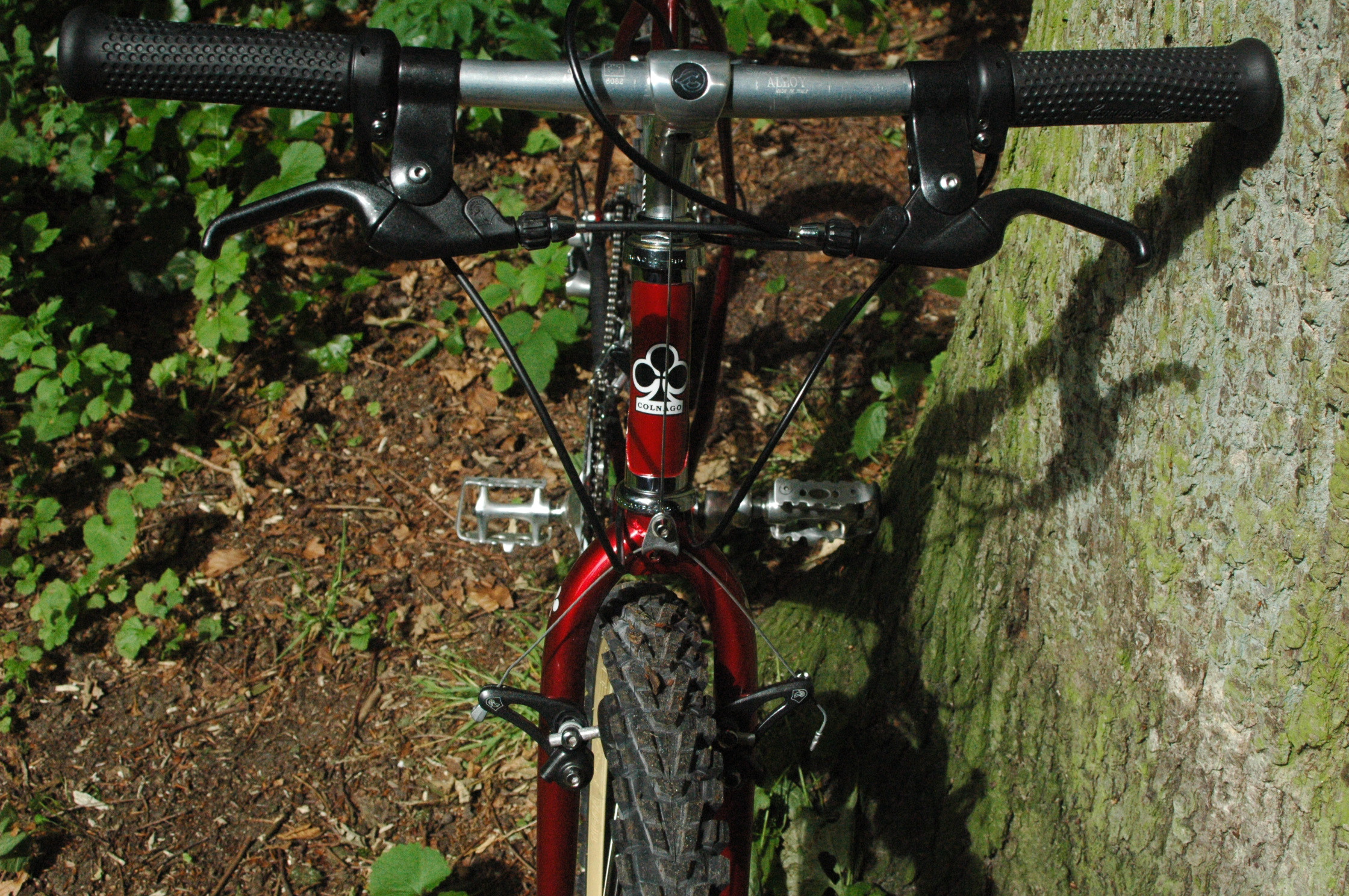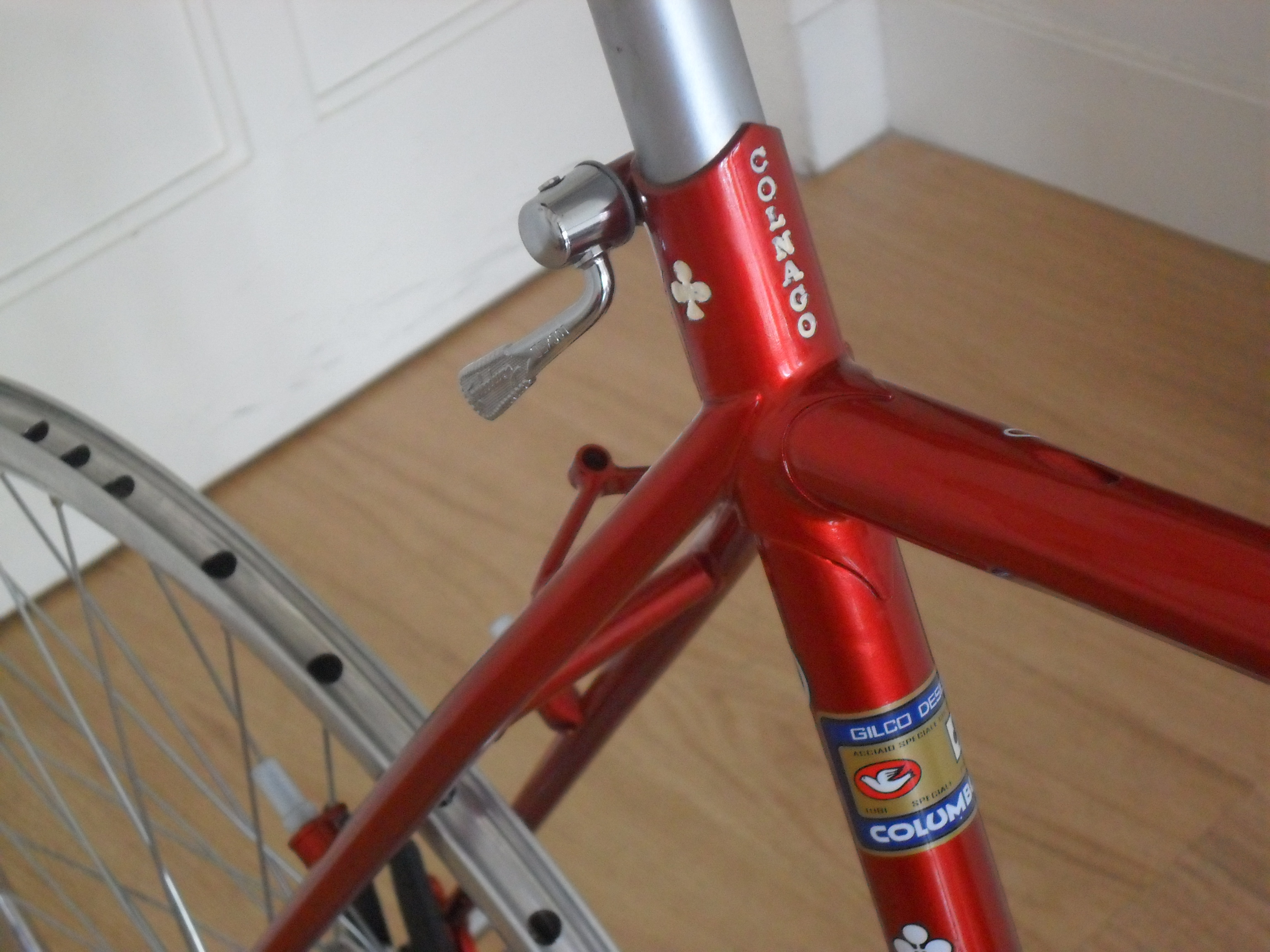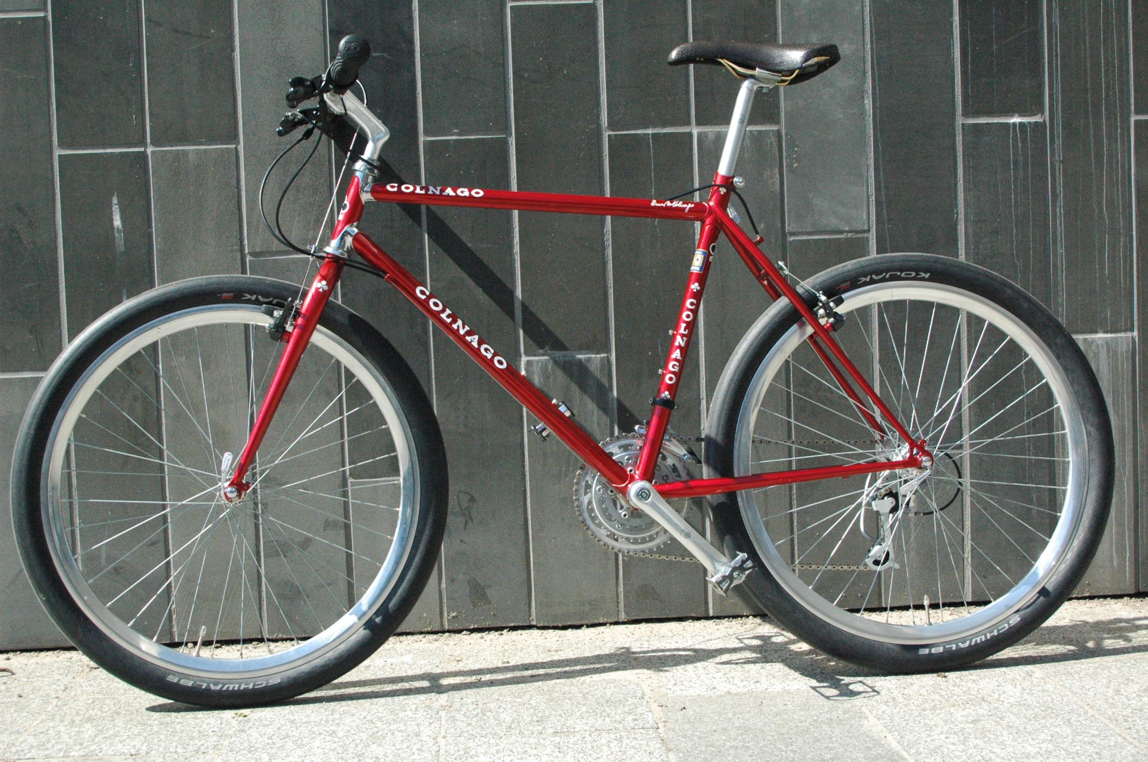 I found set of nos Tioga Psycho tyres, so I borrowed the wheelset from The Next Machine, (Campagnolo O R on Mavic SUP Ceramic rims) until I finish building a set with Campagnolo rims and Olympus MTB hubs..