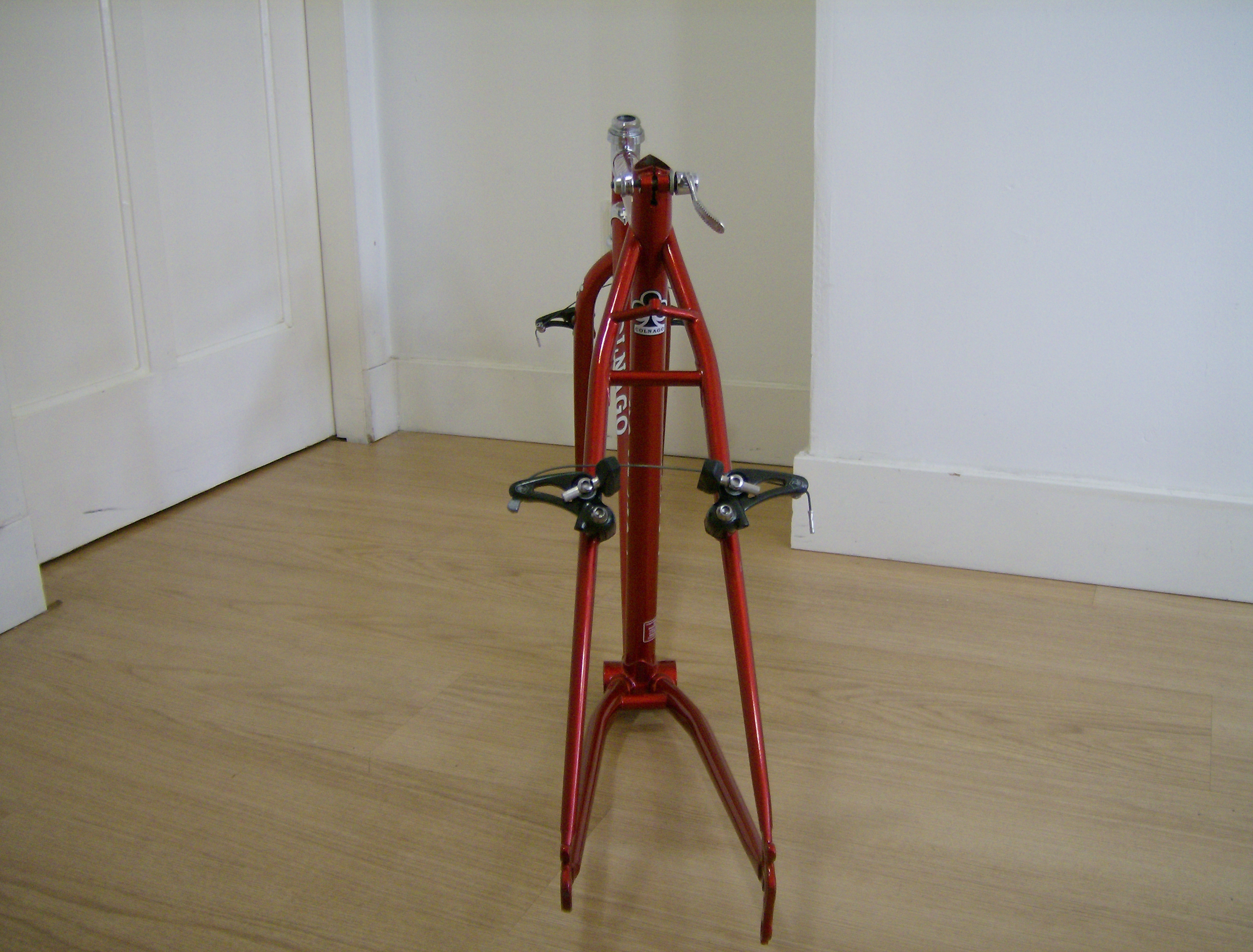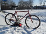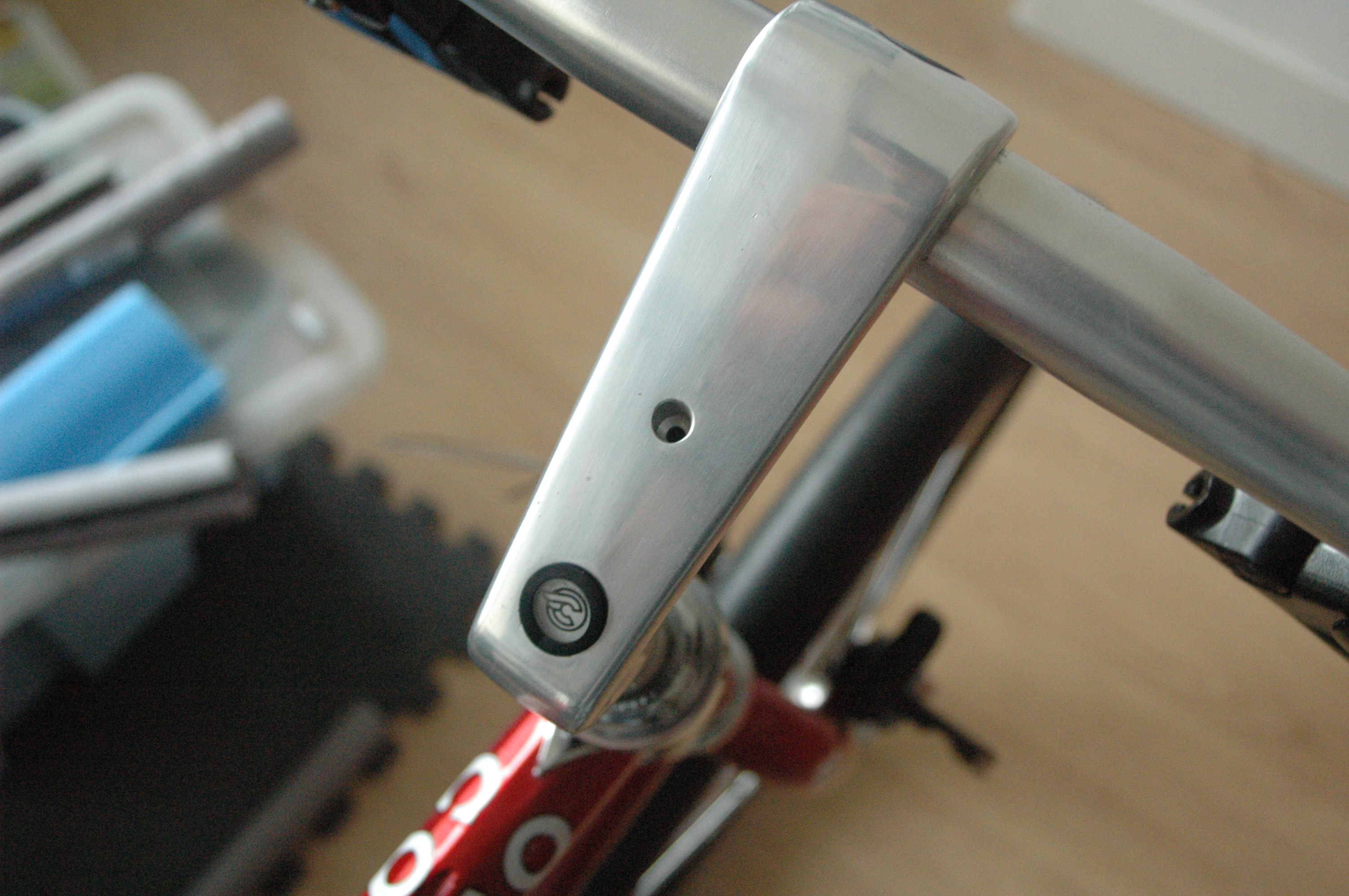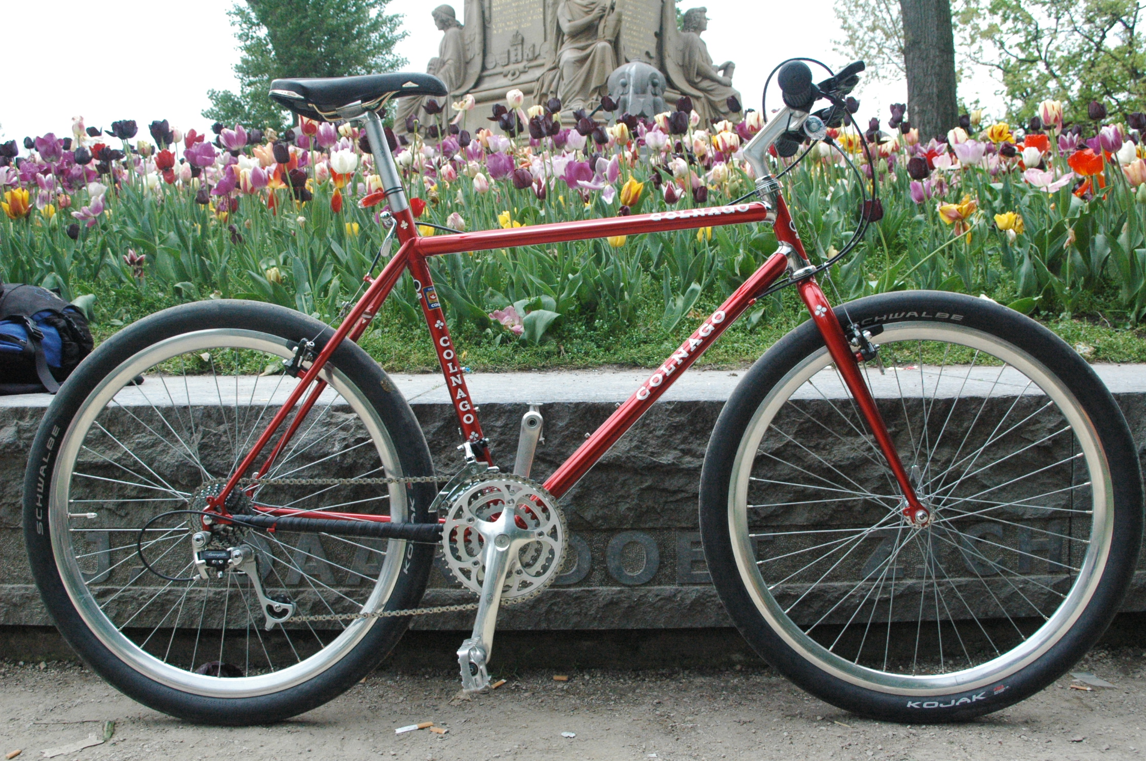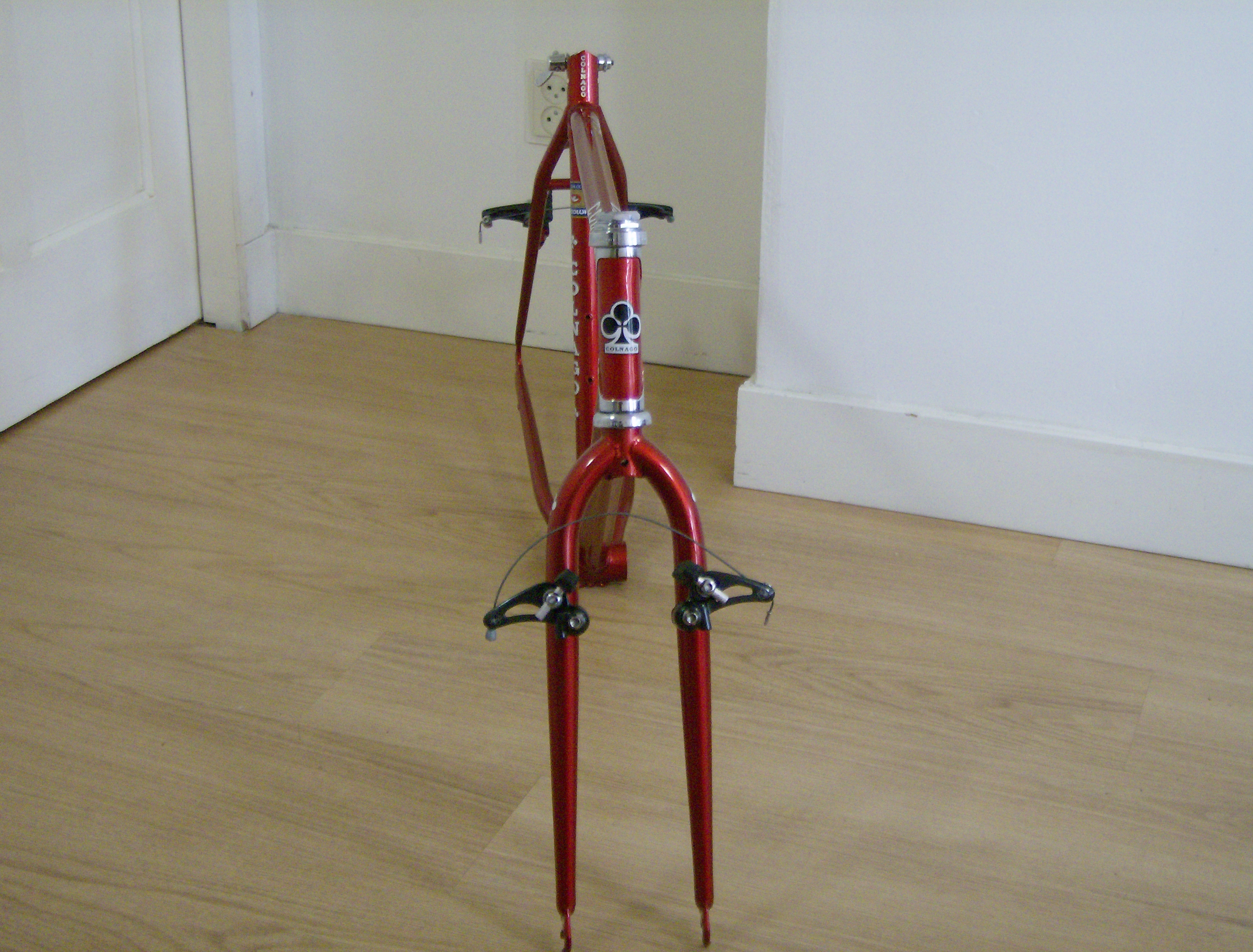 I found set of nos Tioga Psycho tyres, so I borrowed the wheelset from The Next Machine, (Campagnolo O R on Mavic SUP Ceramic rims) until I finish building a set with Campagnolo rims and Olympus MTB hubs..
