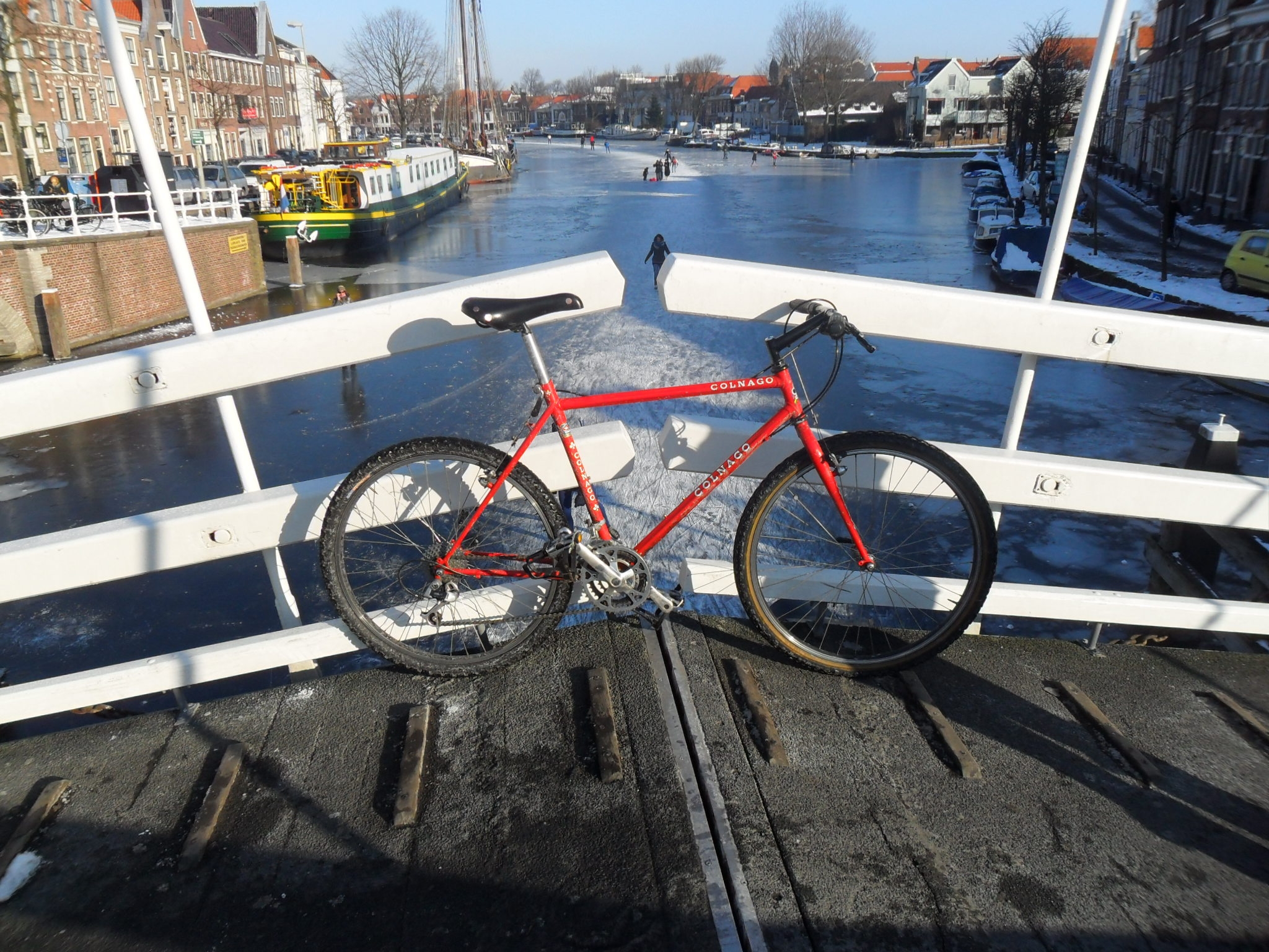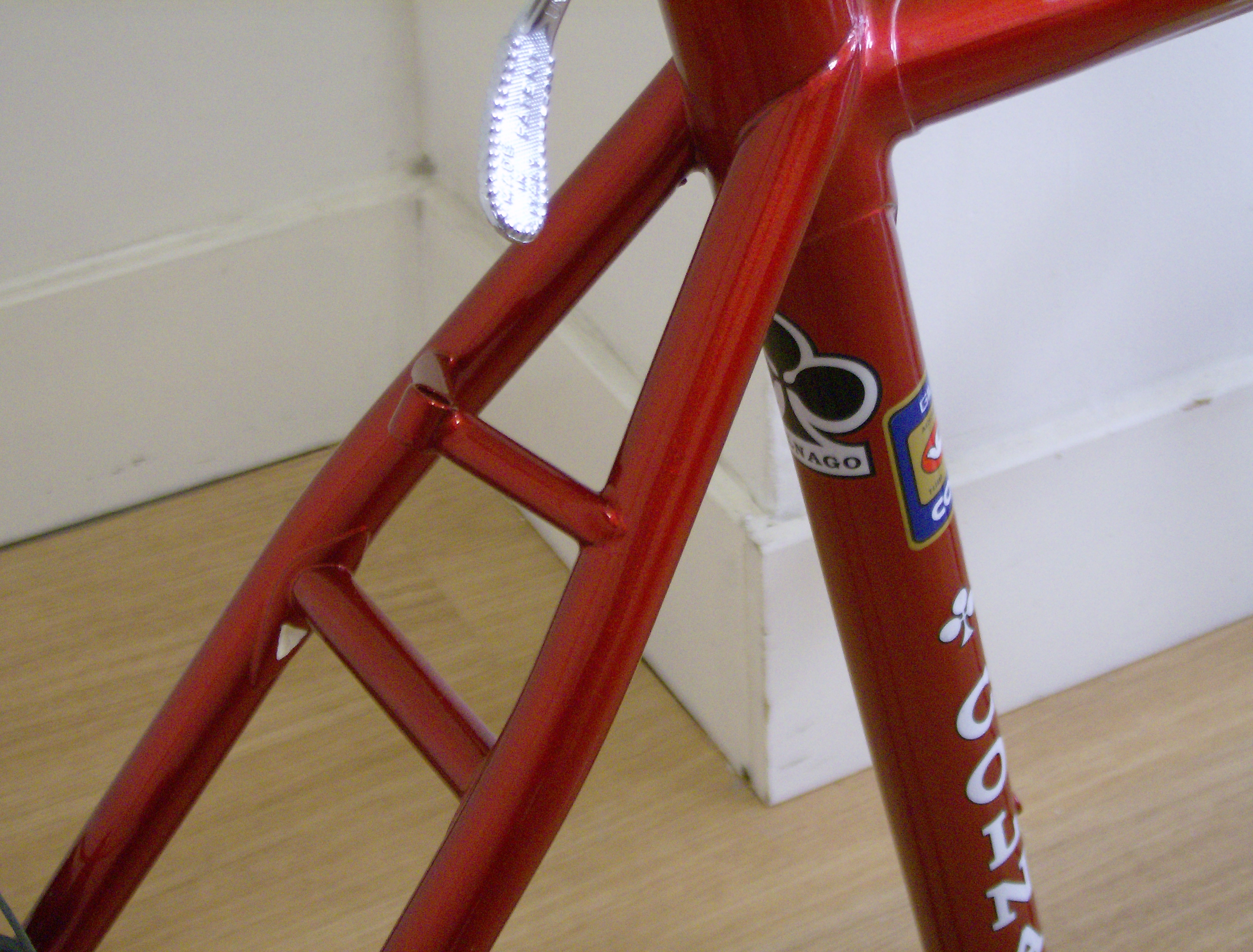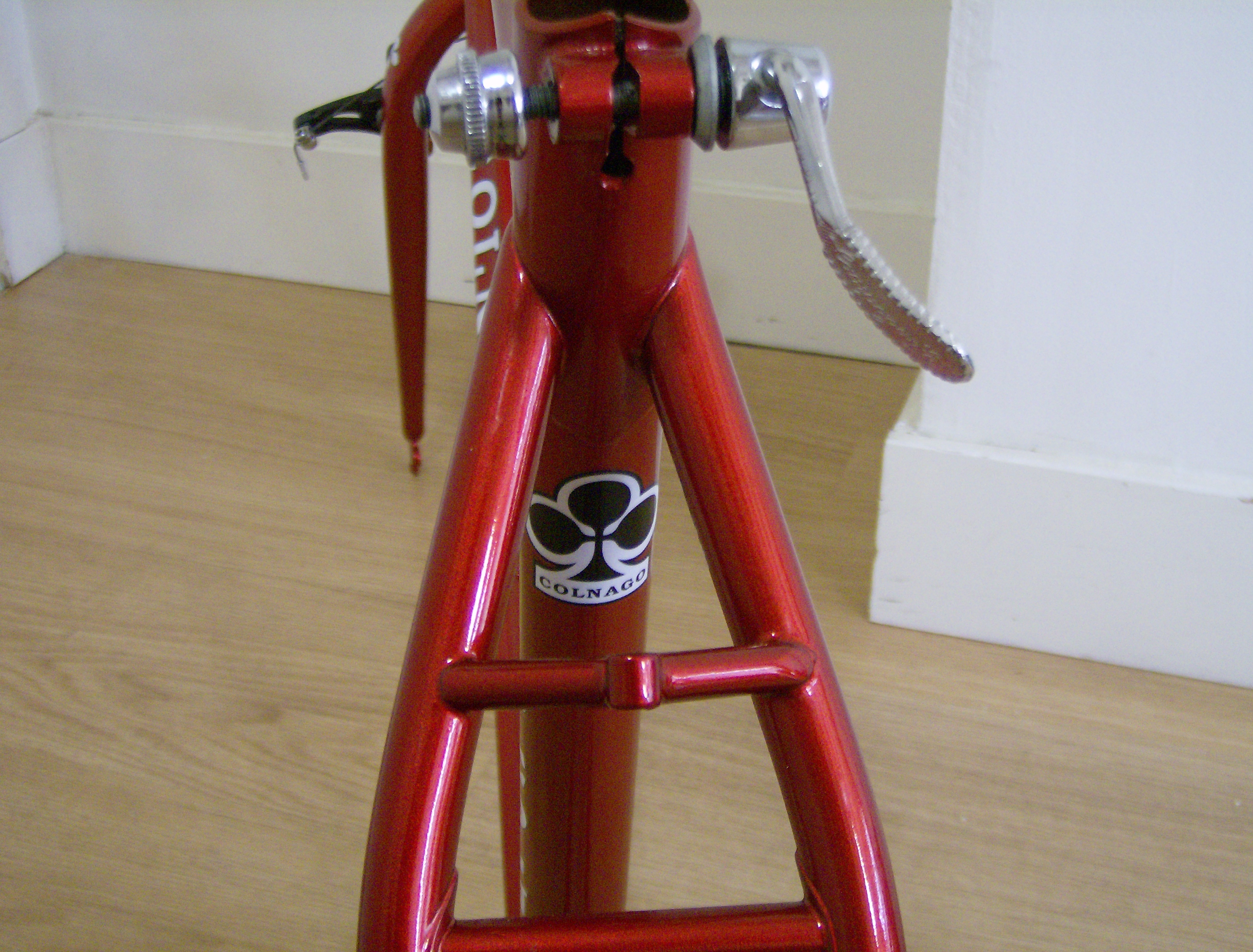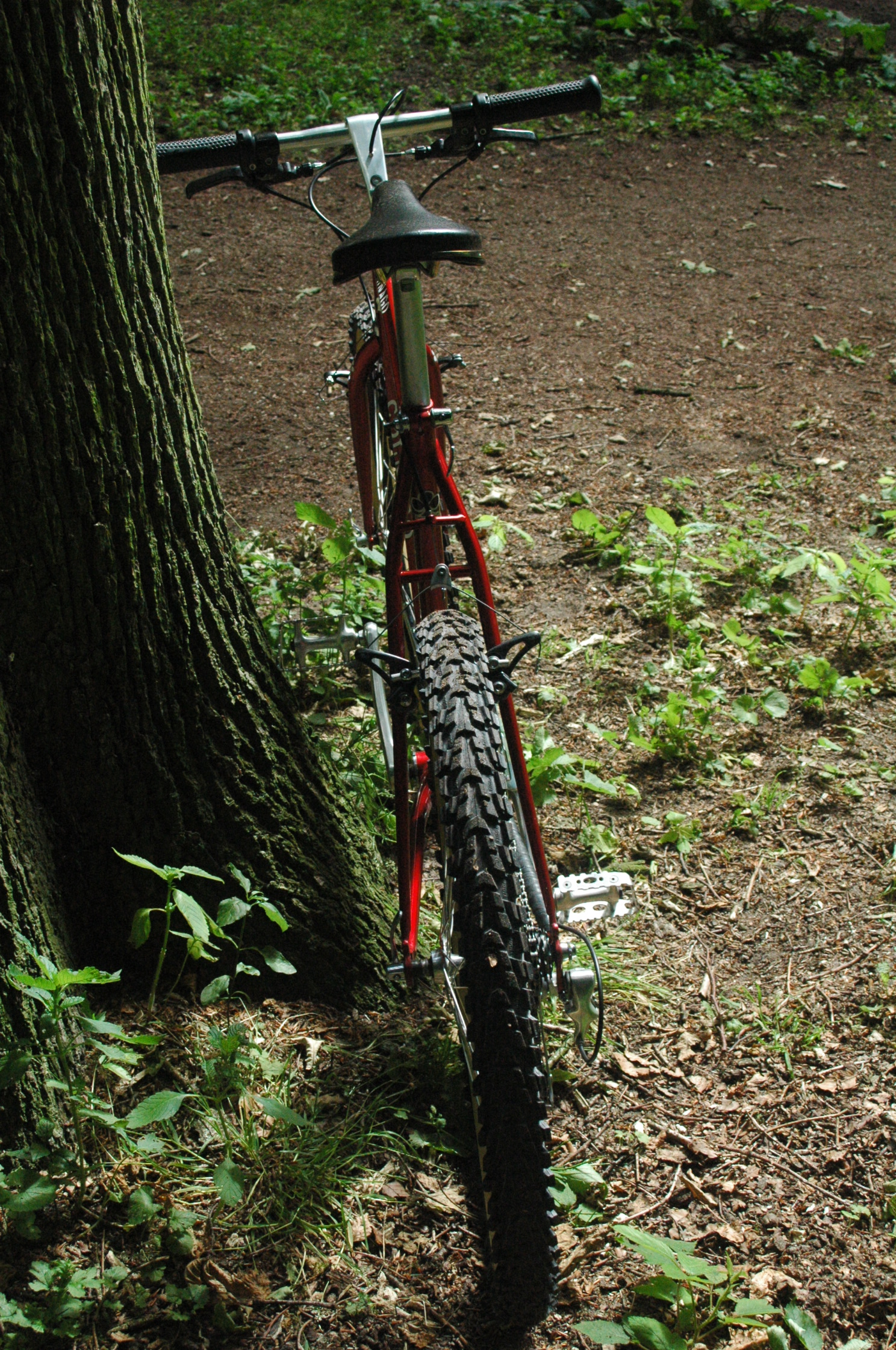I found set of nos Tioga Psycho tyres, so I borrowed the wheelset from The Next Machine, (Campagnolo O R on Mavic SUP Ceramic rims) until I finish building a set with Campagnolo rims and Olympus MTB hubs..