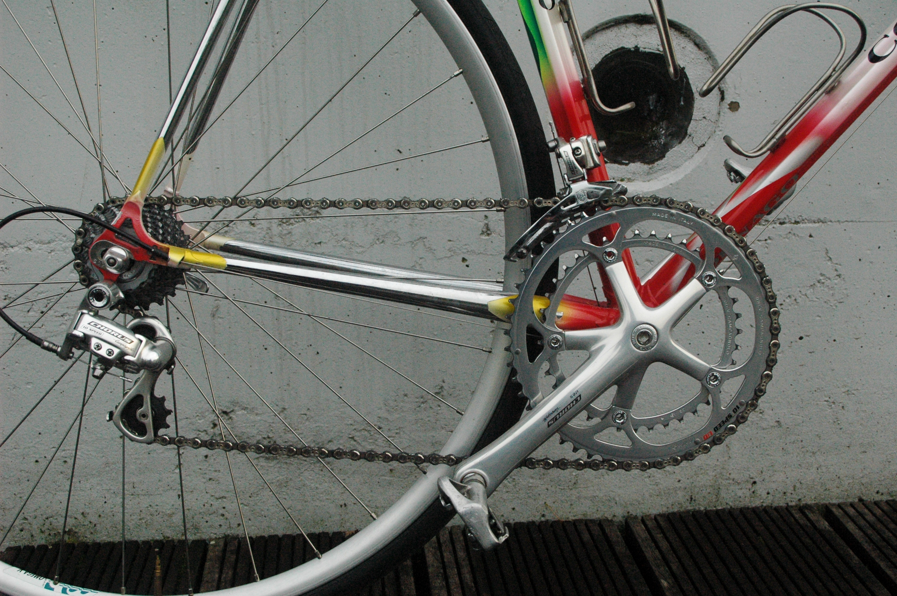 This had a mixed up group when I got it, lower end Campagnolo gearing, Shimano drive.