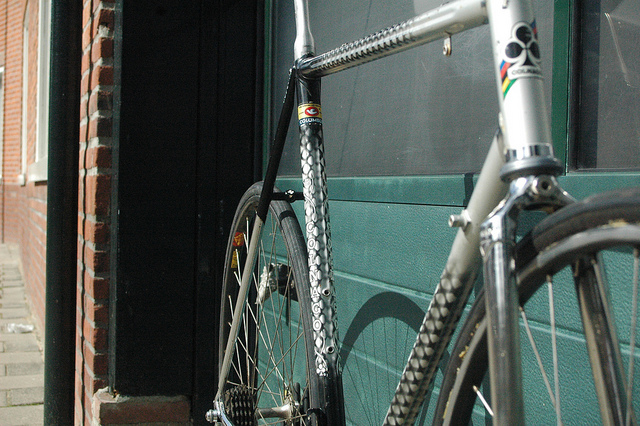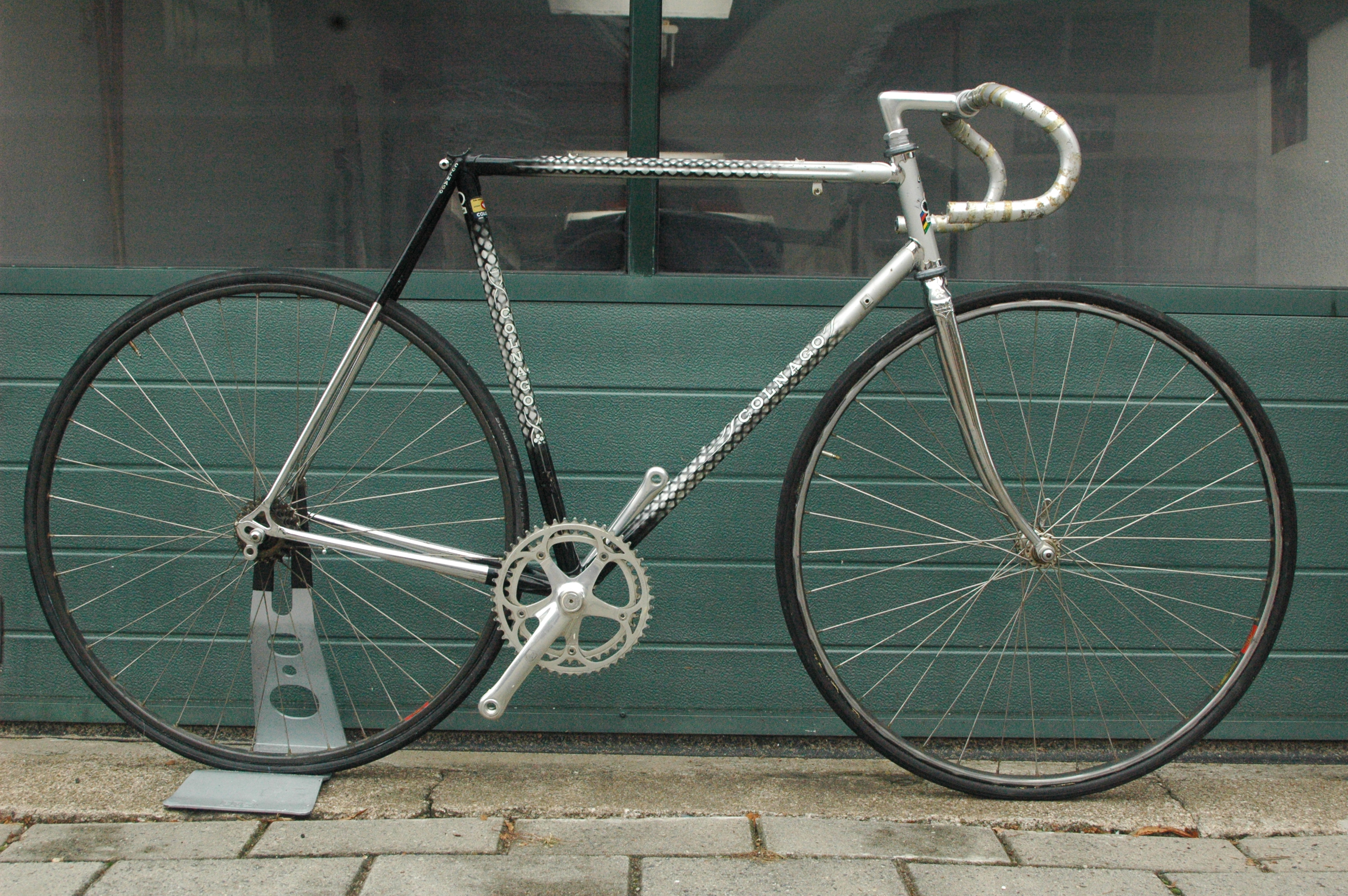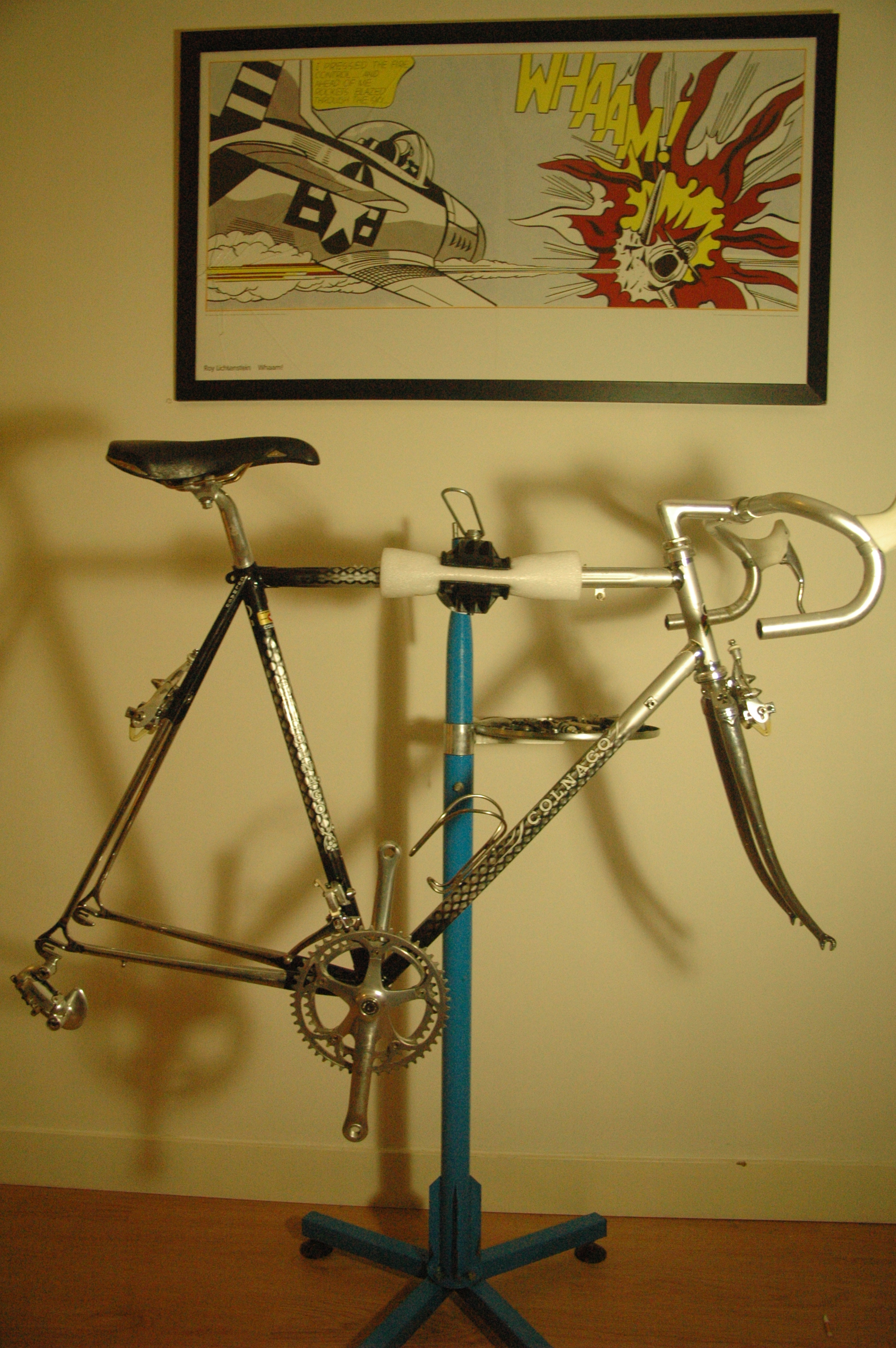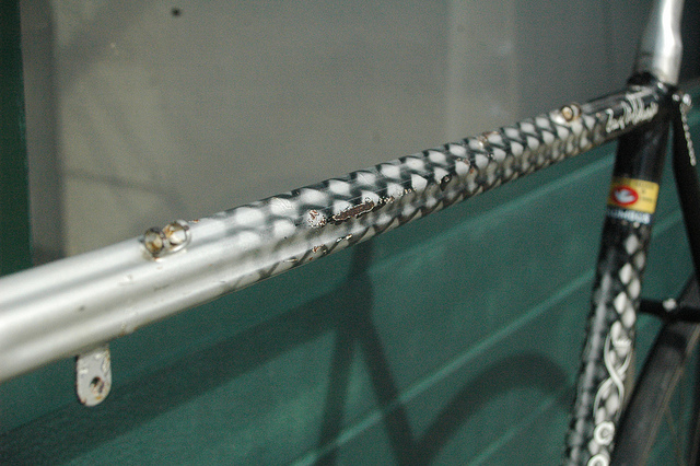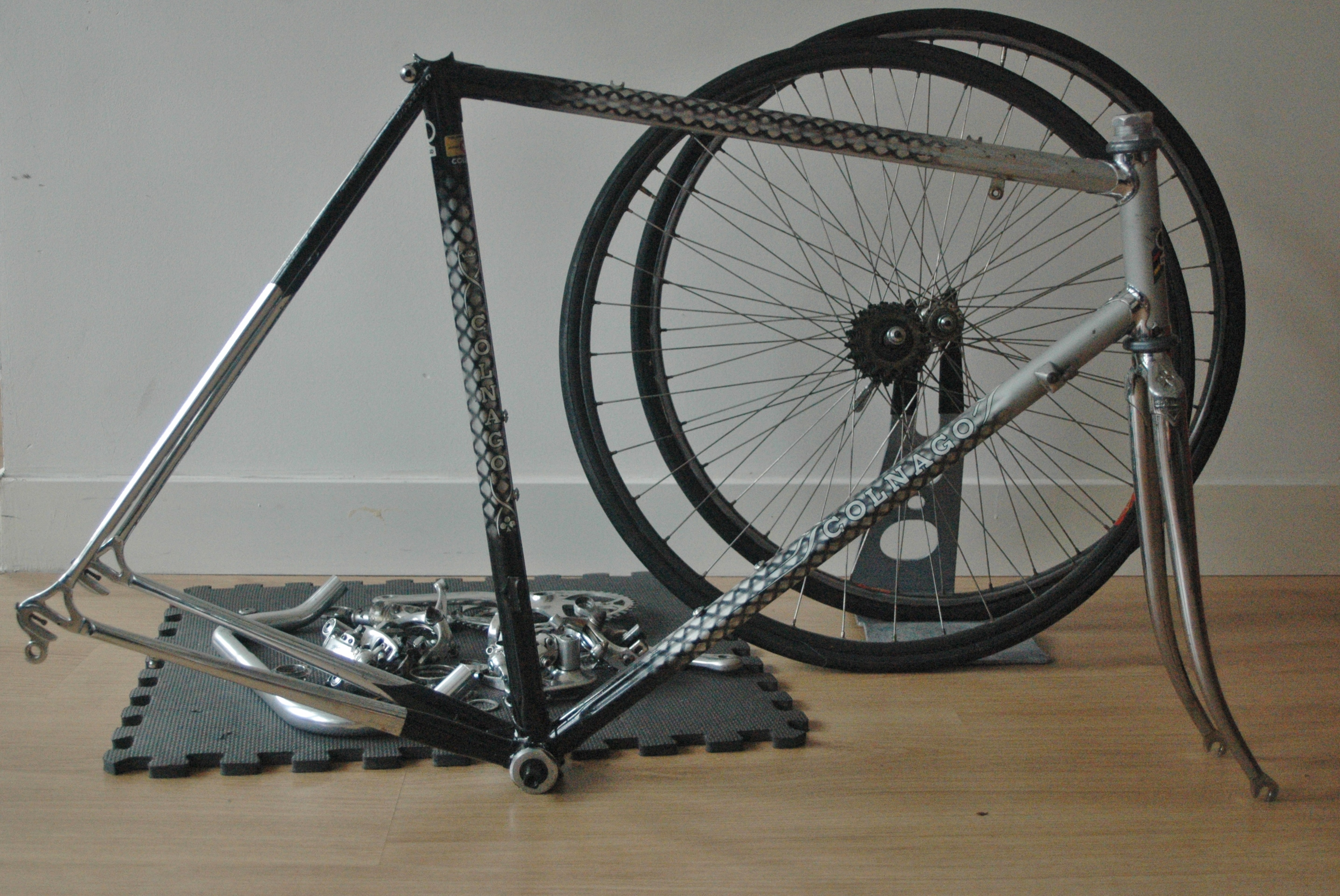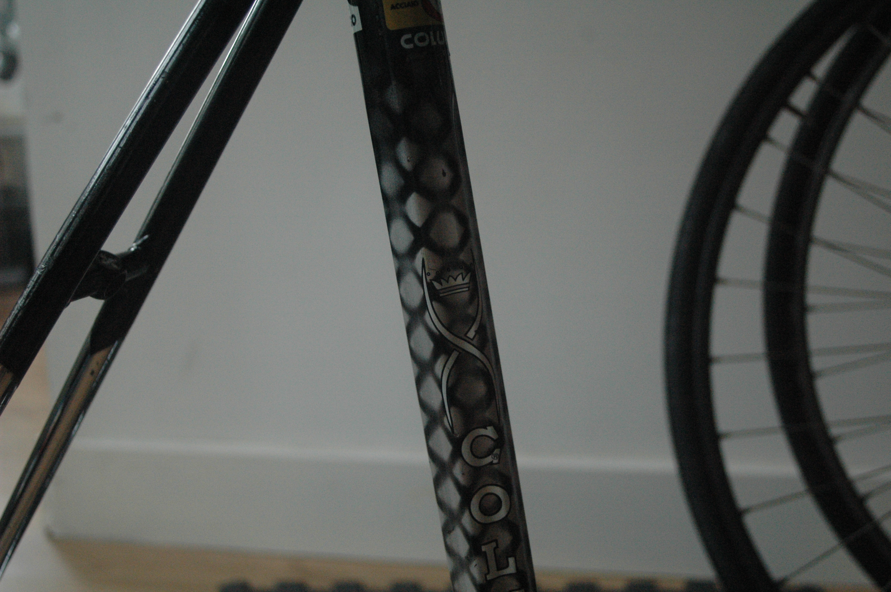 I bought this from a Gentleman who was the chair of an amateur cycling club, so I guess it’s an ex-pro frame given the number tag under the top tube.