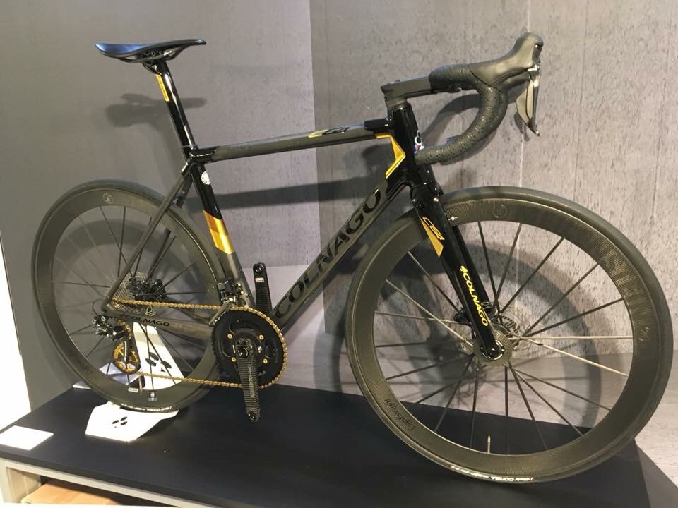 Whilst at the Rouleur London show I stopped by the Colnago stand , and managed to get around the limited edition Colnago C64 Disc Gold Private Collection…