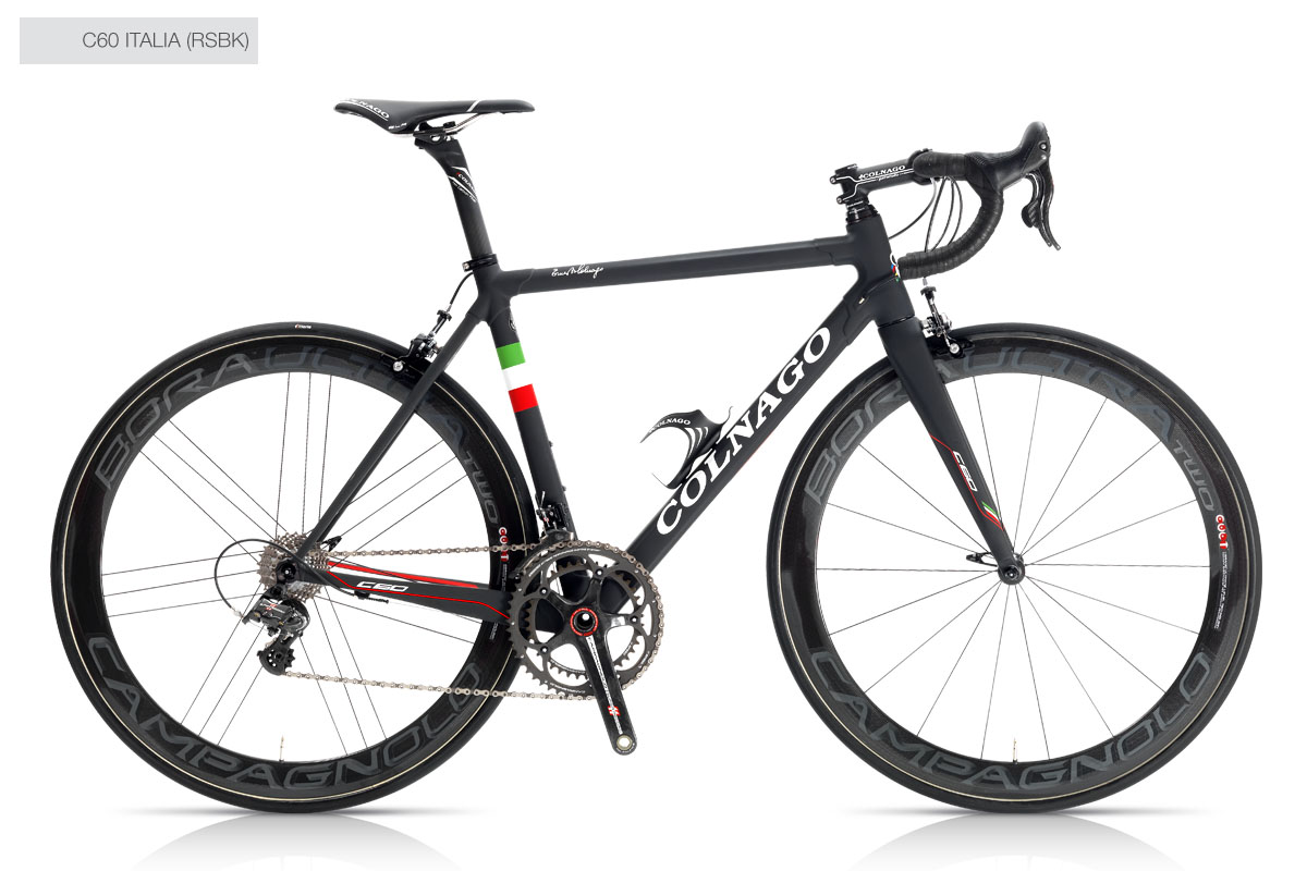 also of interest are the forks, no caliper bolt hole at the front, Colnago stamped near the crown, and an aero profile..