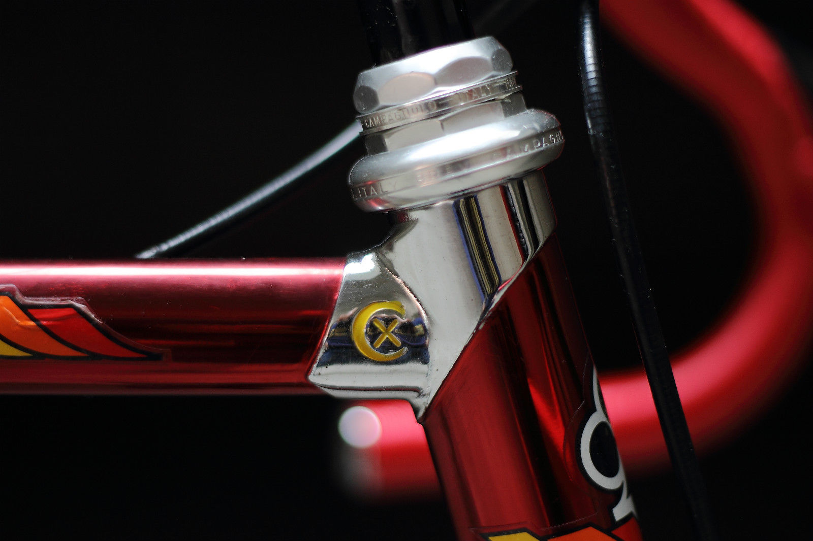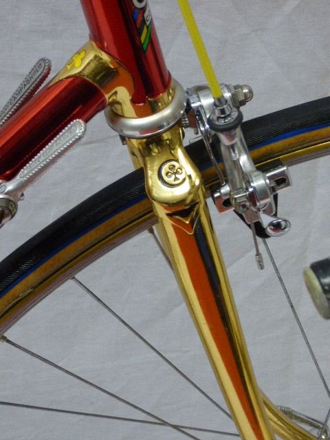 the frame was ahead of its time, as it has an internal cable guide on the top tube, which wasn’t implemented on the ”off the peg” Colnago frames until the early ’90’s