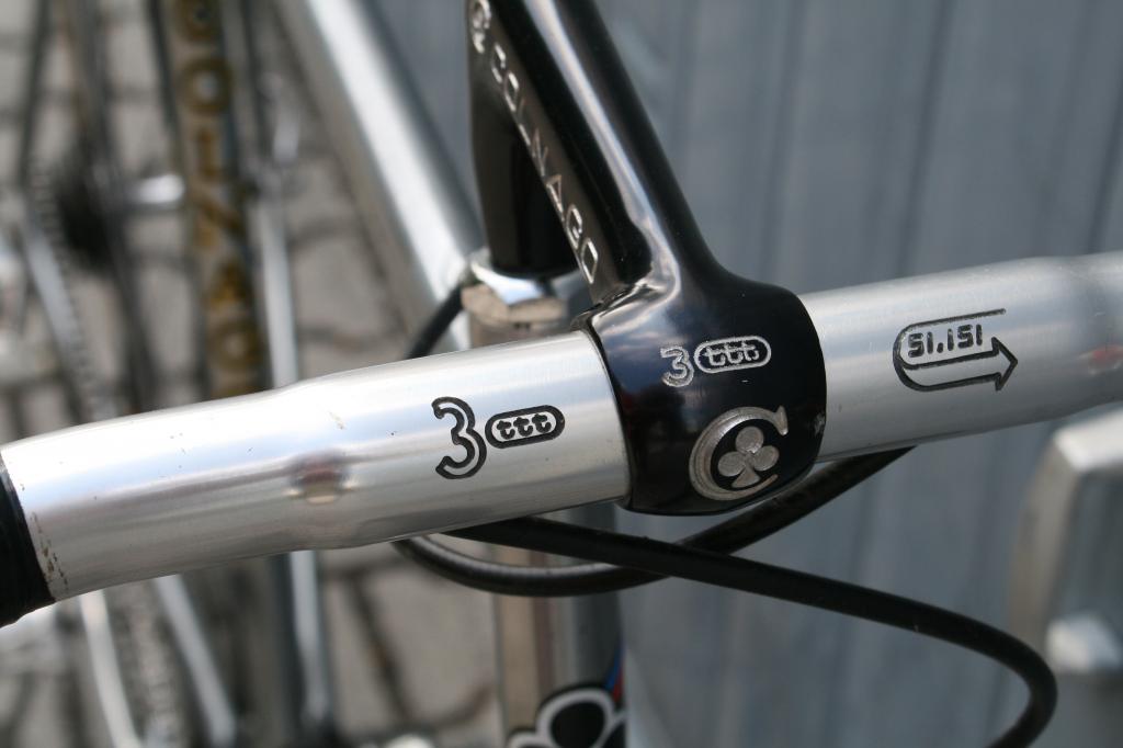 the stem and bars are unusual as well, the stem would also compliment the Colnago Oval CX, and the quill part is smaller than normal stems, and the bars are stamped in black 3TTT..