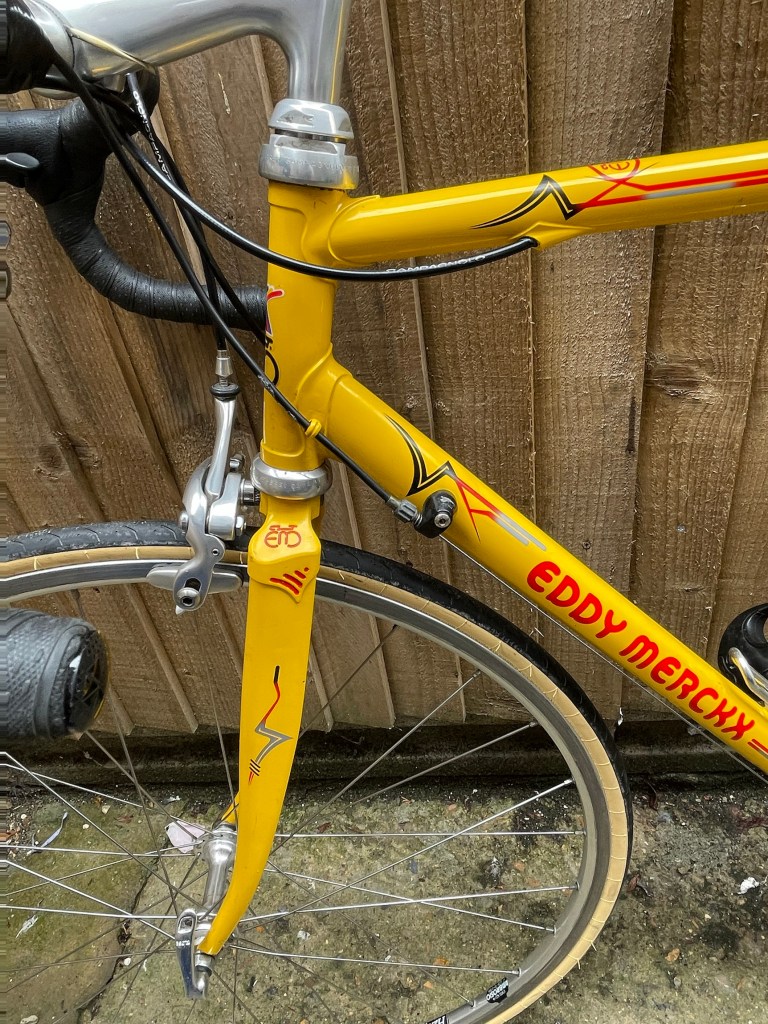 I imported this from Belgium. It’s like Vlaanderen Team decor, so I finished with Campagnolo Chorus 9 speed. As far as I’m aware, the team rode with this.