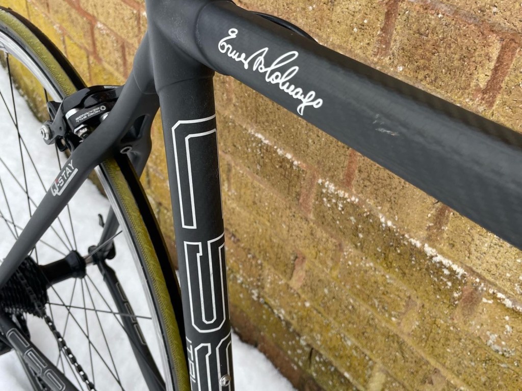 I imported this from Belgium. It’s like Vlaanderen Team decor, so I finished with Campagnolo Chorus 9 speed. As far as I’m aware, the team rode with this.