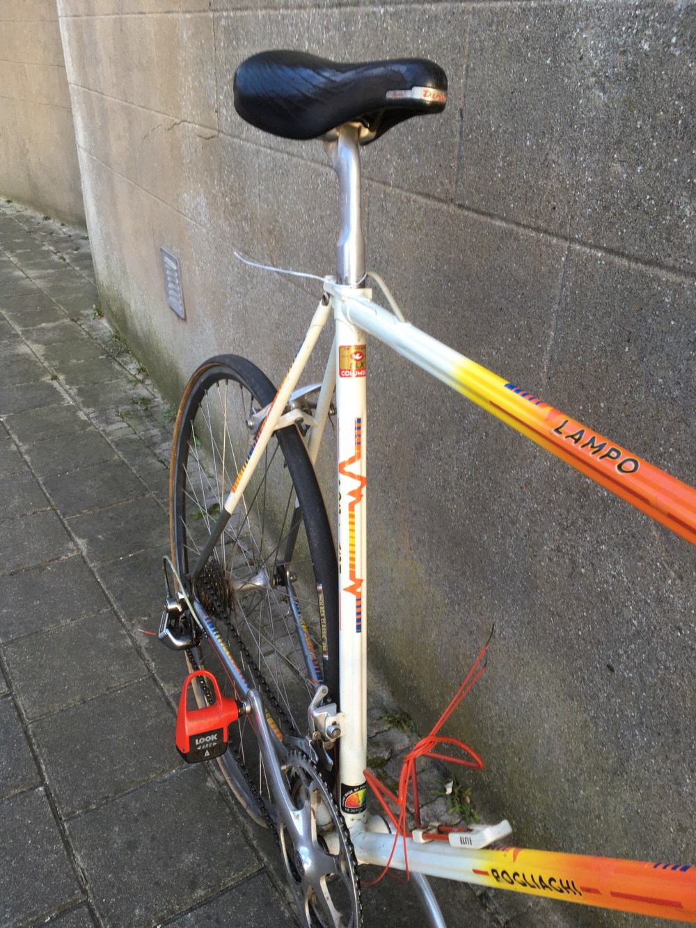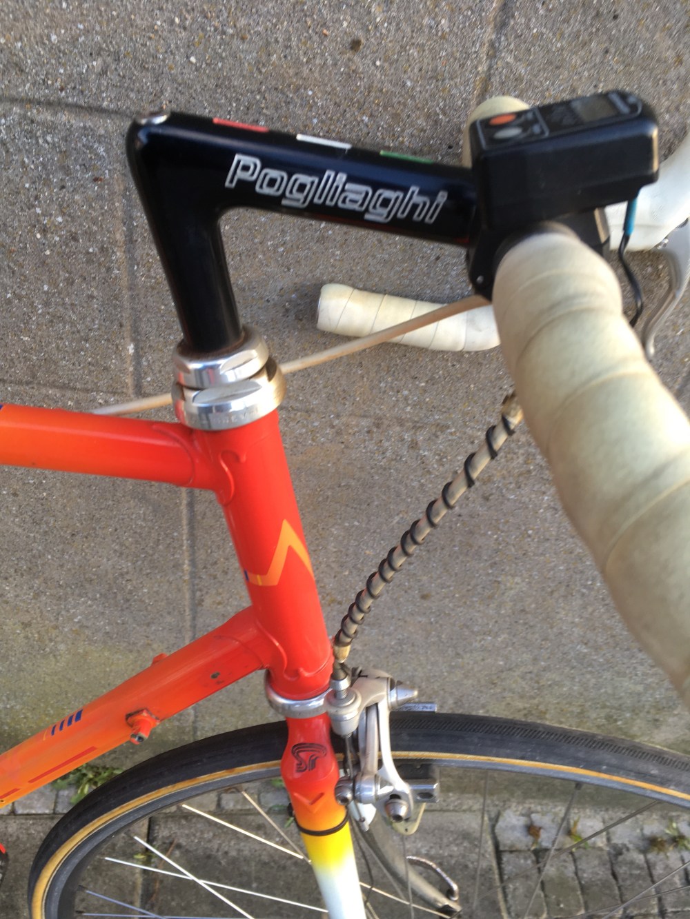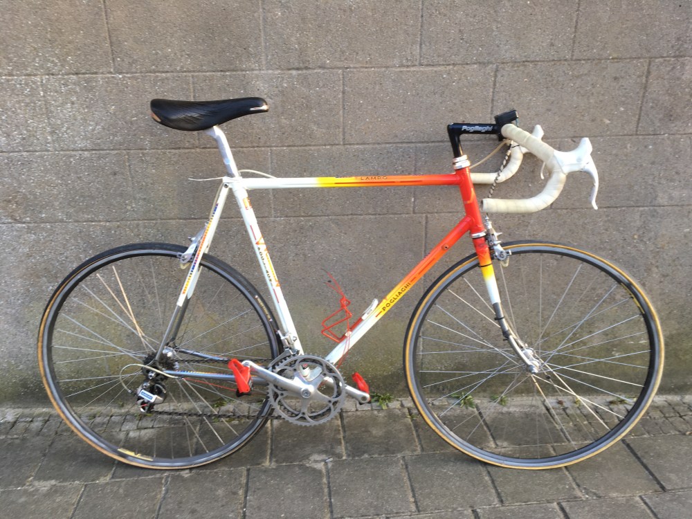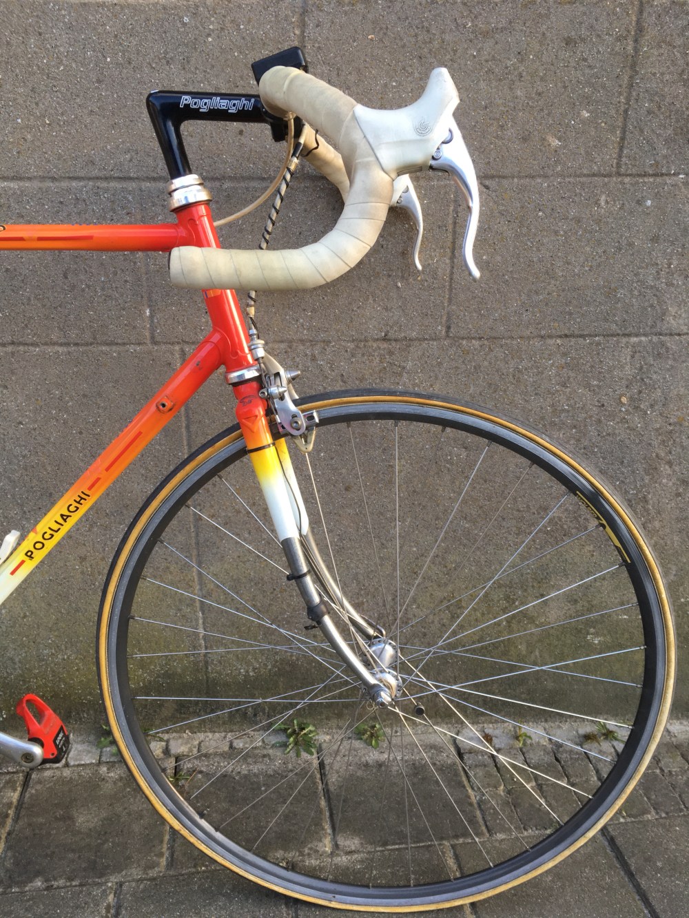 The Pogliaghi brand was bought by Rossin in the late ’80’s , and this Pogliaghi Lampo SLX circa 1989 is Rossin era , with a lot of similarities to the top of the line Rossin Ghibli SLX , pictures are from when bike was found , in Belgium ….