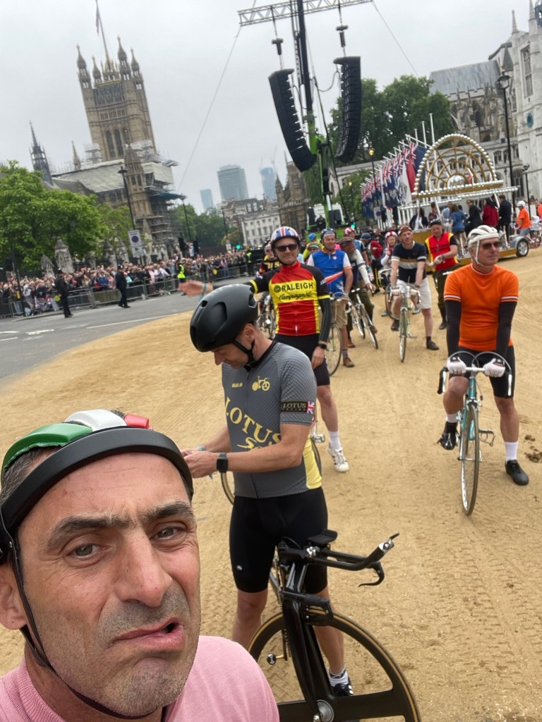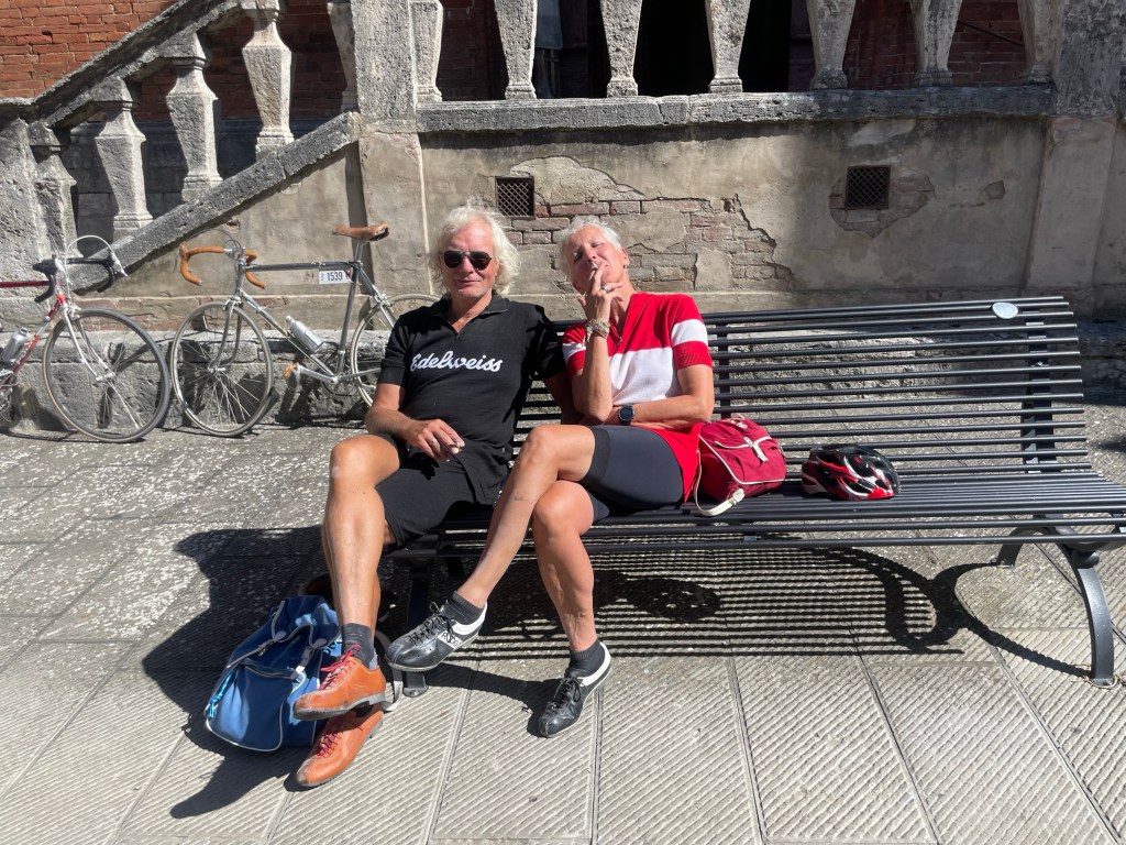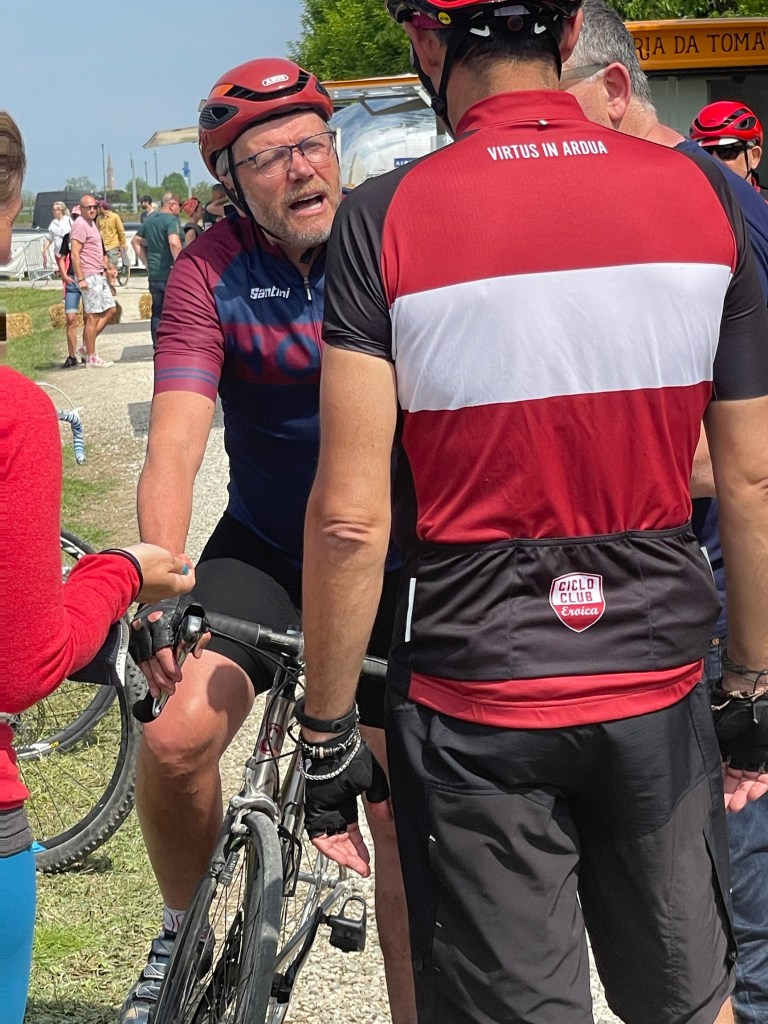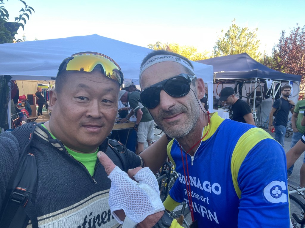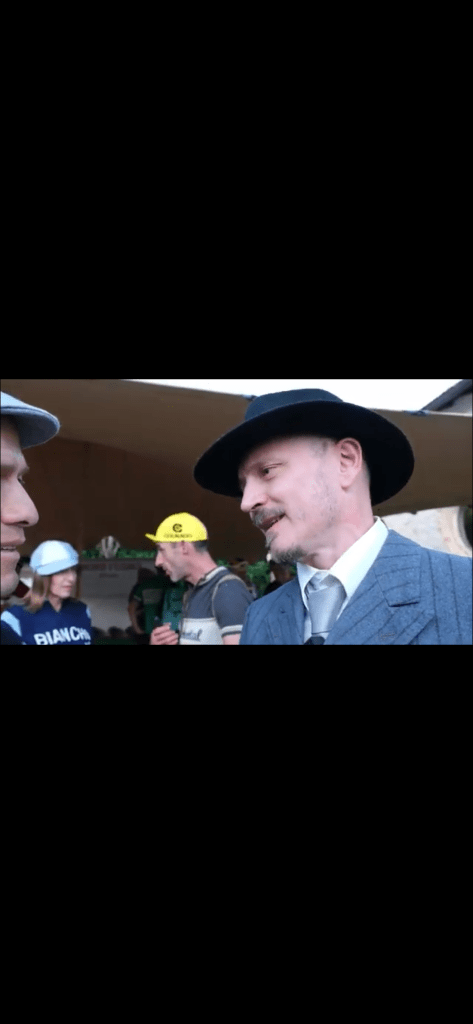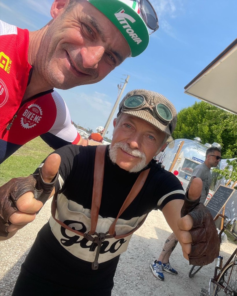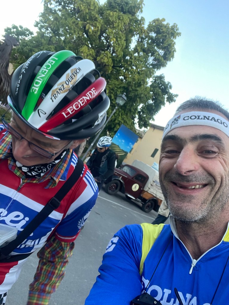 Just as I was heading out on the route, another late rider appeared . My friend Franz from Austria , who attended the late Queen of England’s Royal Pageant Eroica event…