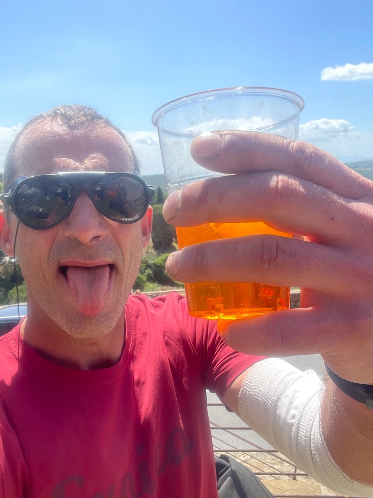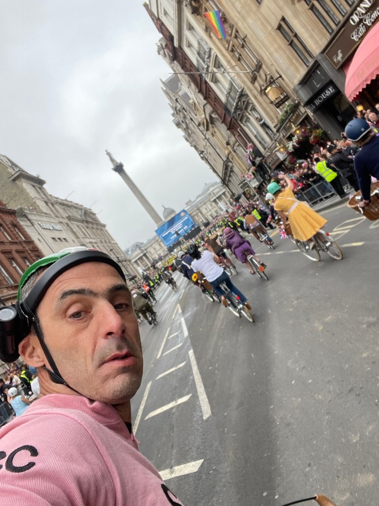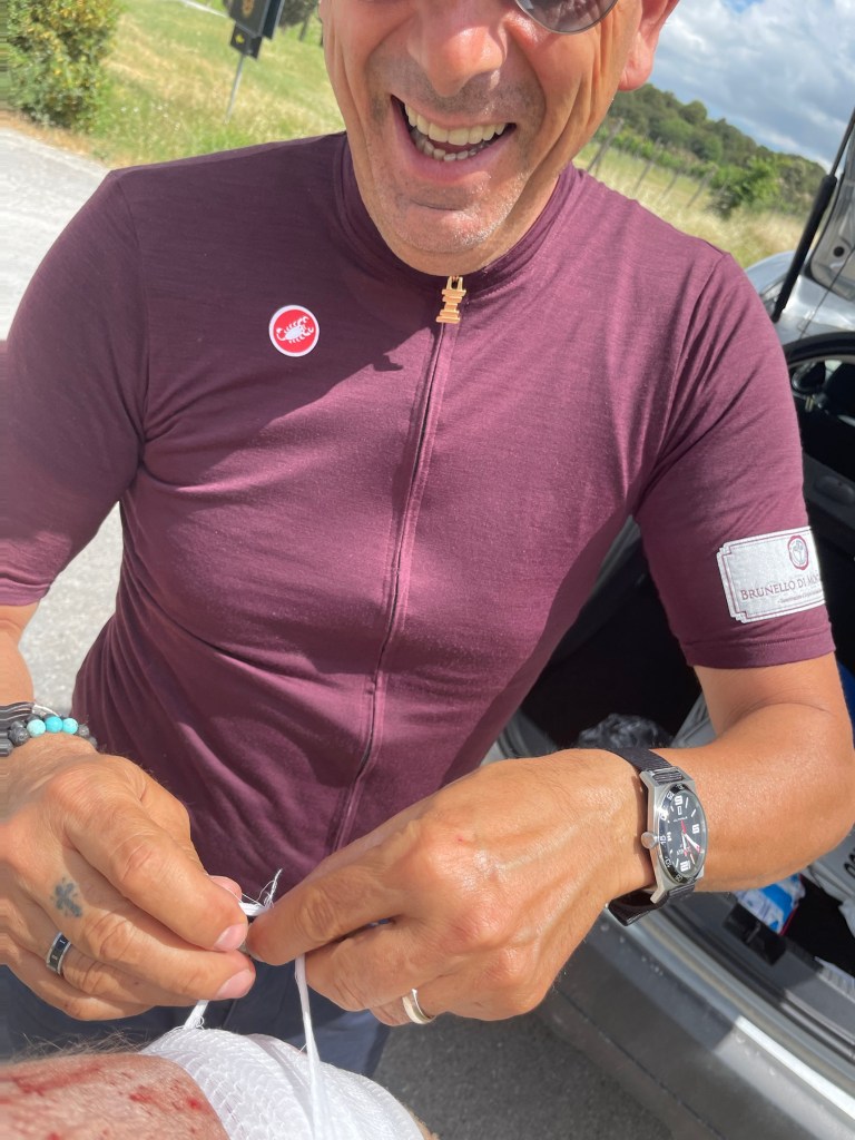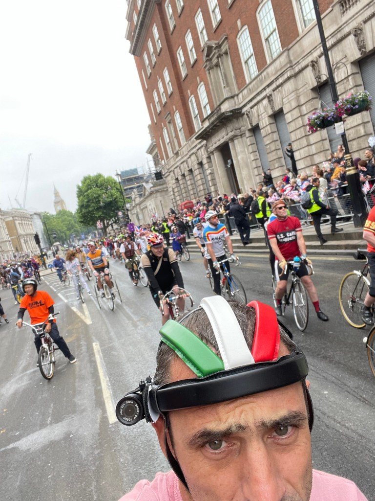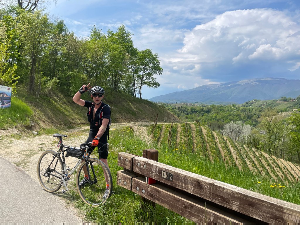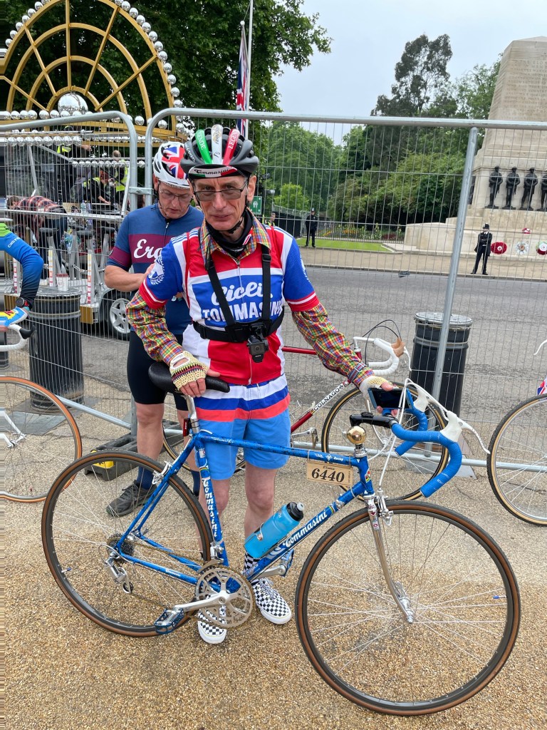 Just as I was heading out on the route, another late rider appeared . My friend Franz from Austria , who attended the late Queen of England’s Royal Pageant Eroica event…