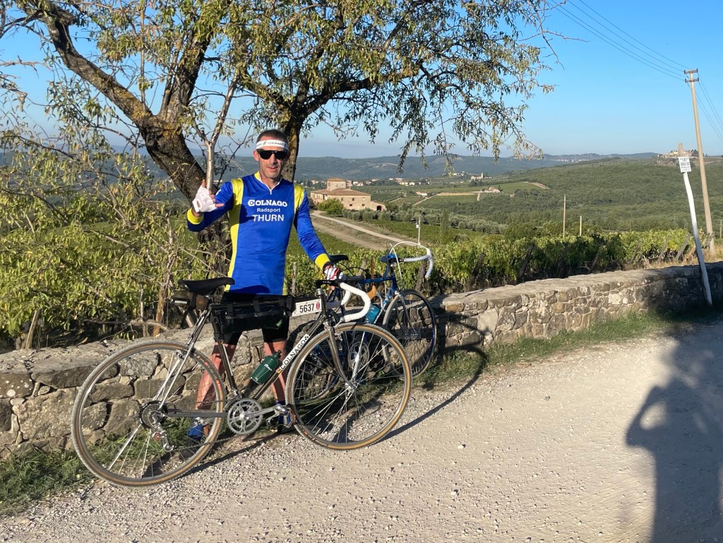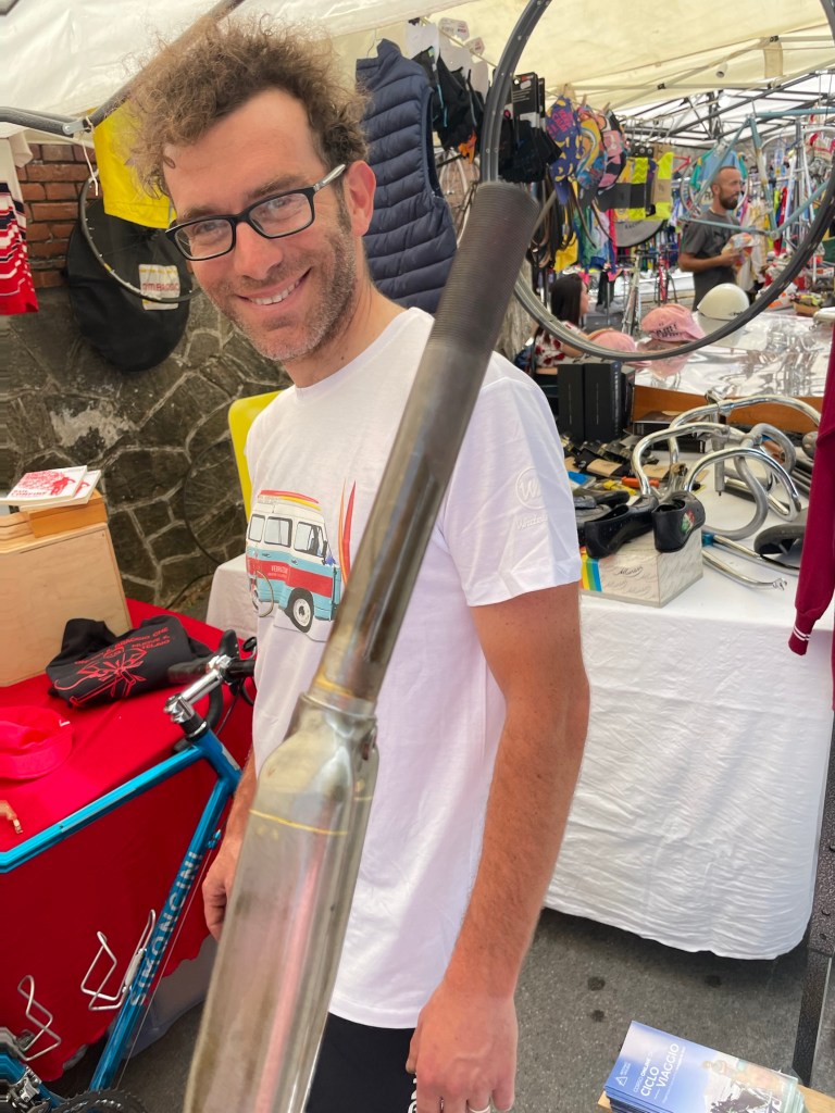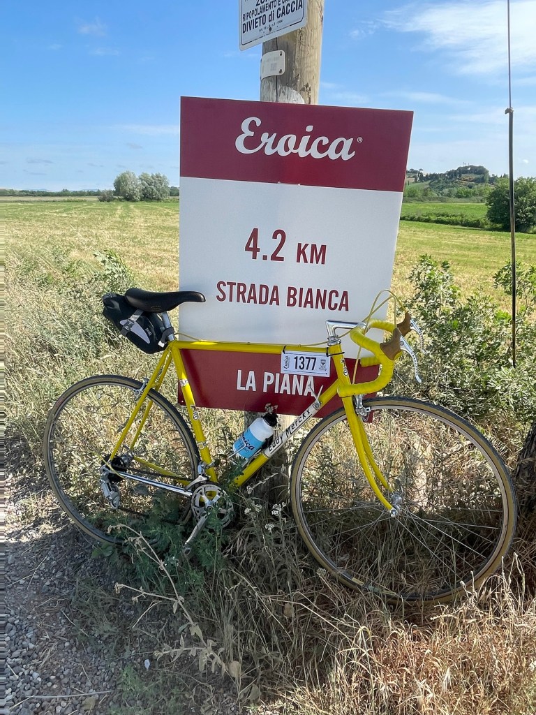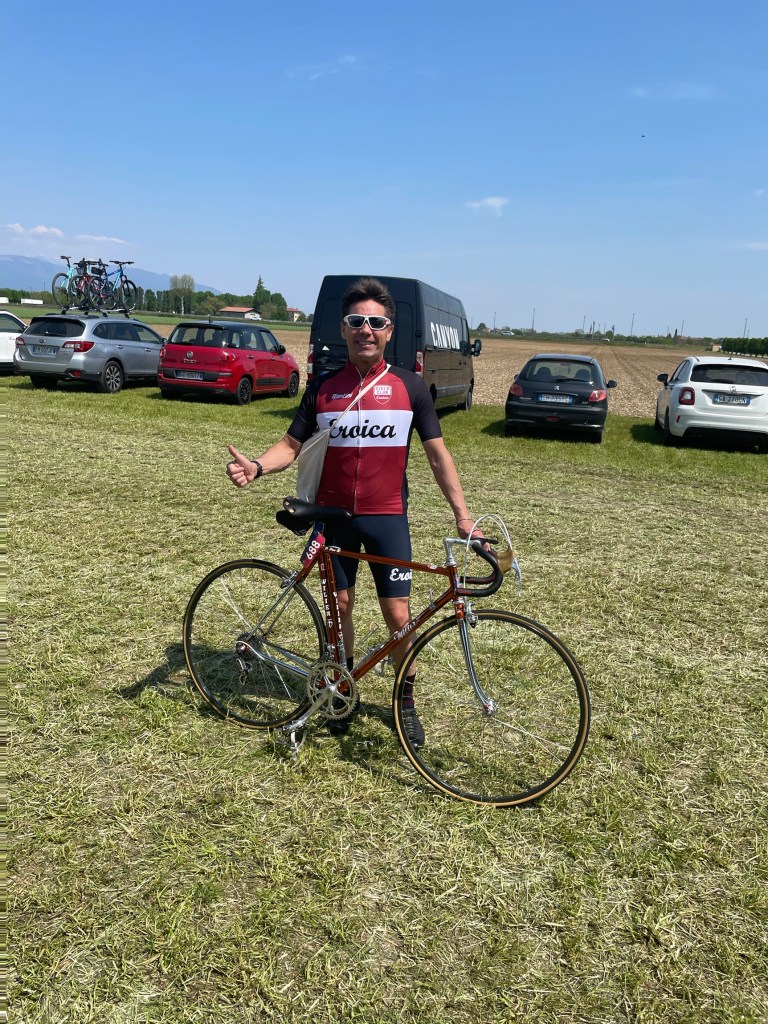 I choose the 1985 Colnago Kwantum Decosol , ex Adrie Van Der Poel Cyclocross bike. I rode it before back in 2016 at my first L’Eroica .