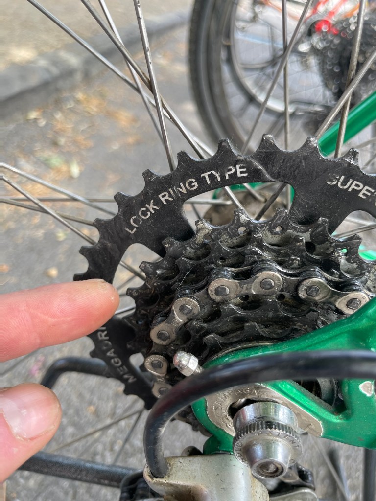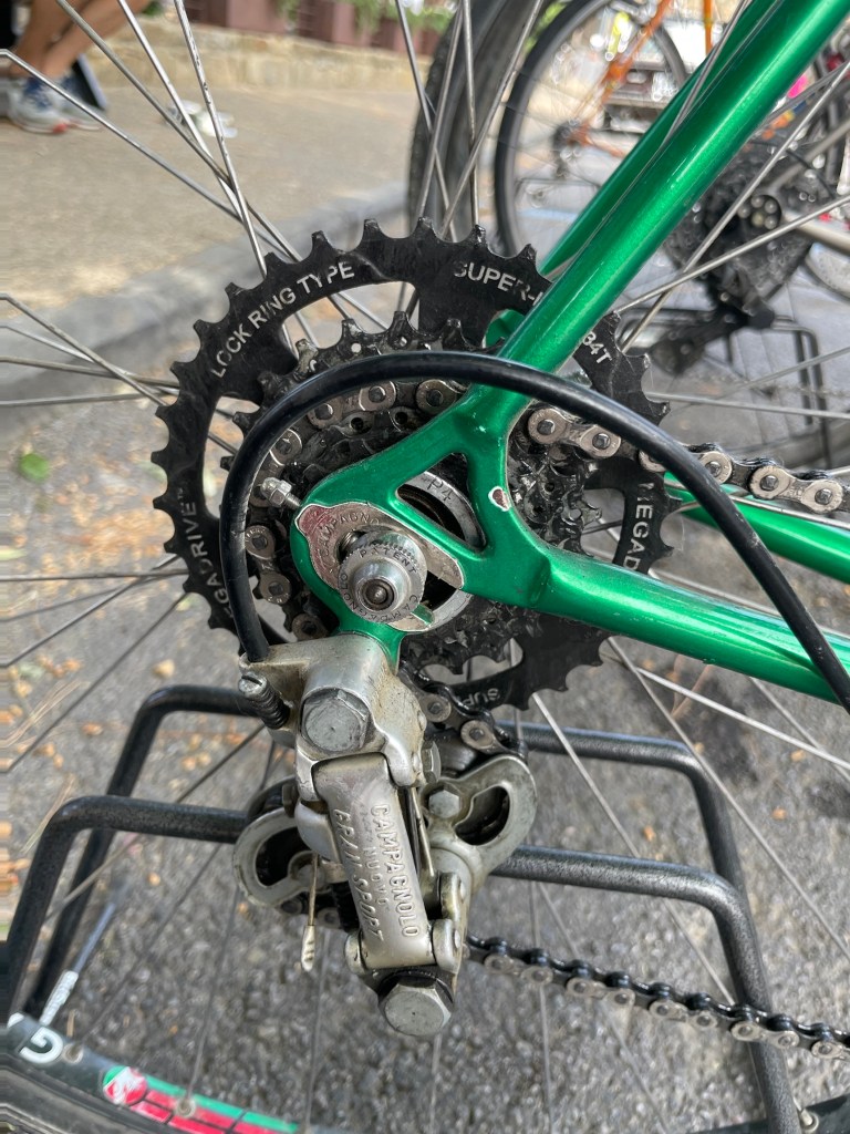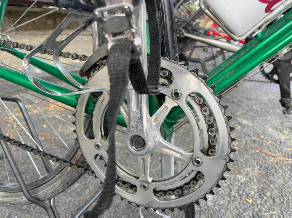 I built with a Campagnolo Rally rear derailleur , Stronglight 86 bcd crank arms , 42/30 chainrings and a 7 speed 14/32 freewheel cassette. Better for the climbs , I don’t like walking up loose surfaced inclines .