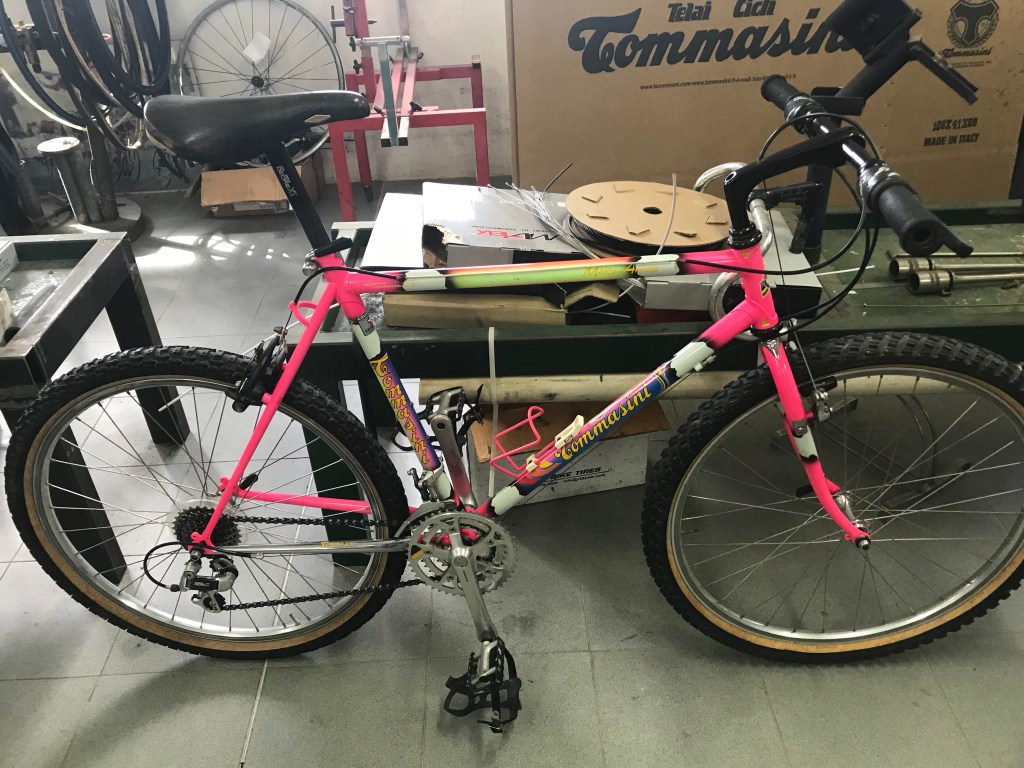 While I was being given a tour of the premises by Don Irio Tommasini’s daughter Barbara , I saw a beautiful mint condition Monte Amiata Mountain Bike , with original Shimano Deore XT group…